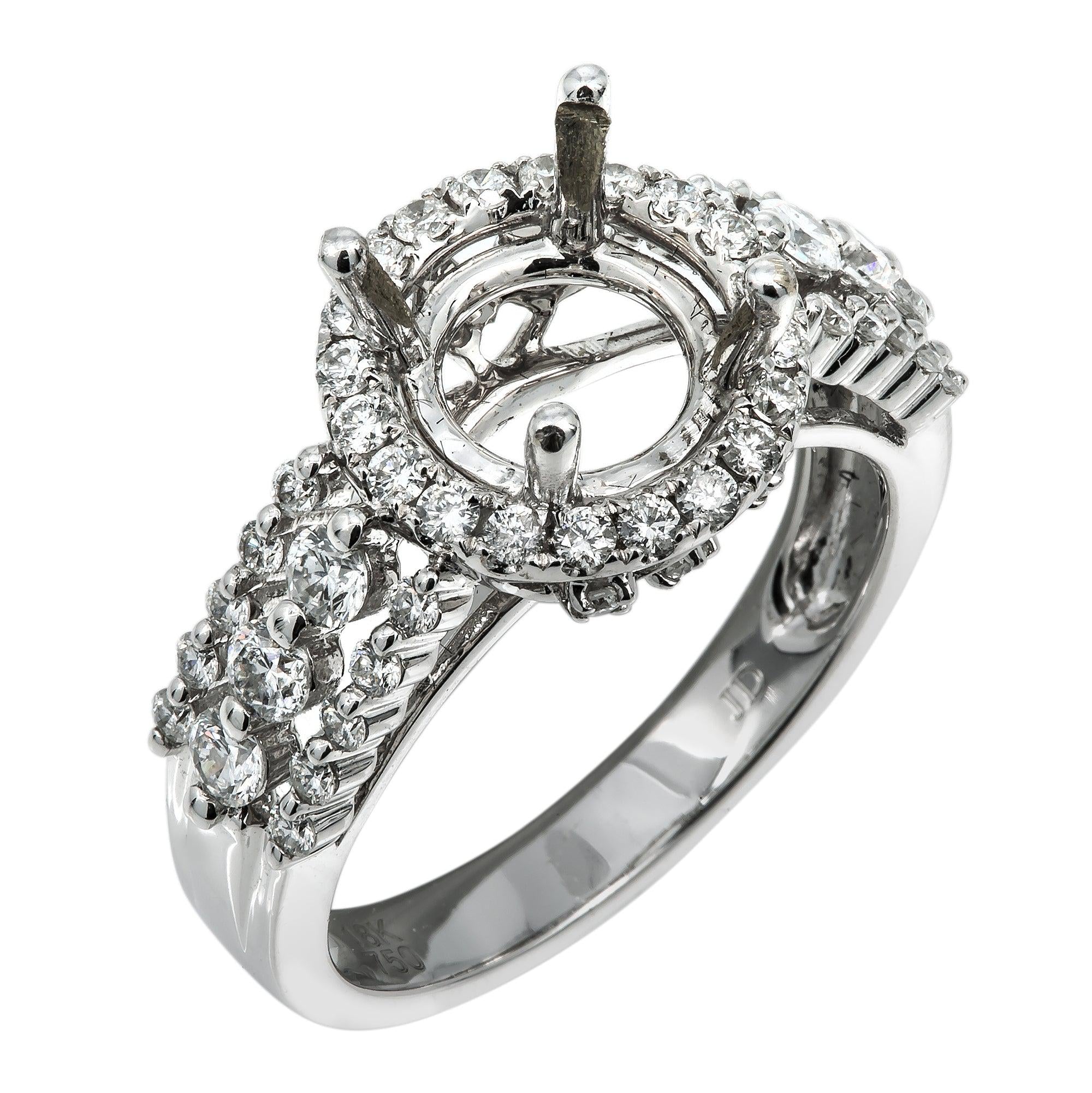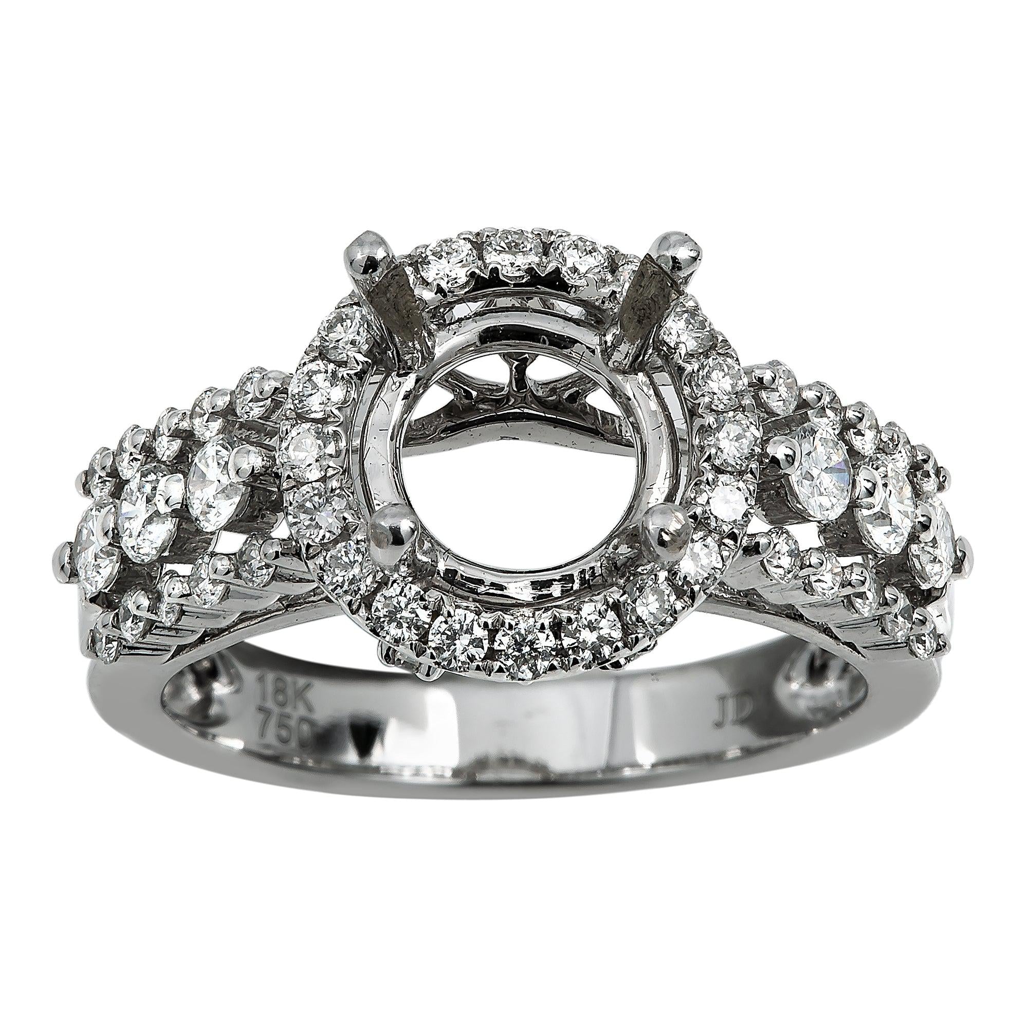 18K White Gold Diamond Engagement Semi-Mounting Women's Ring With 0.95 CT Diamonds
