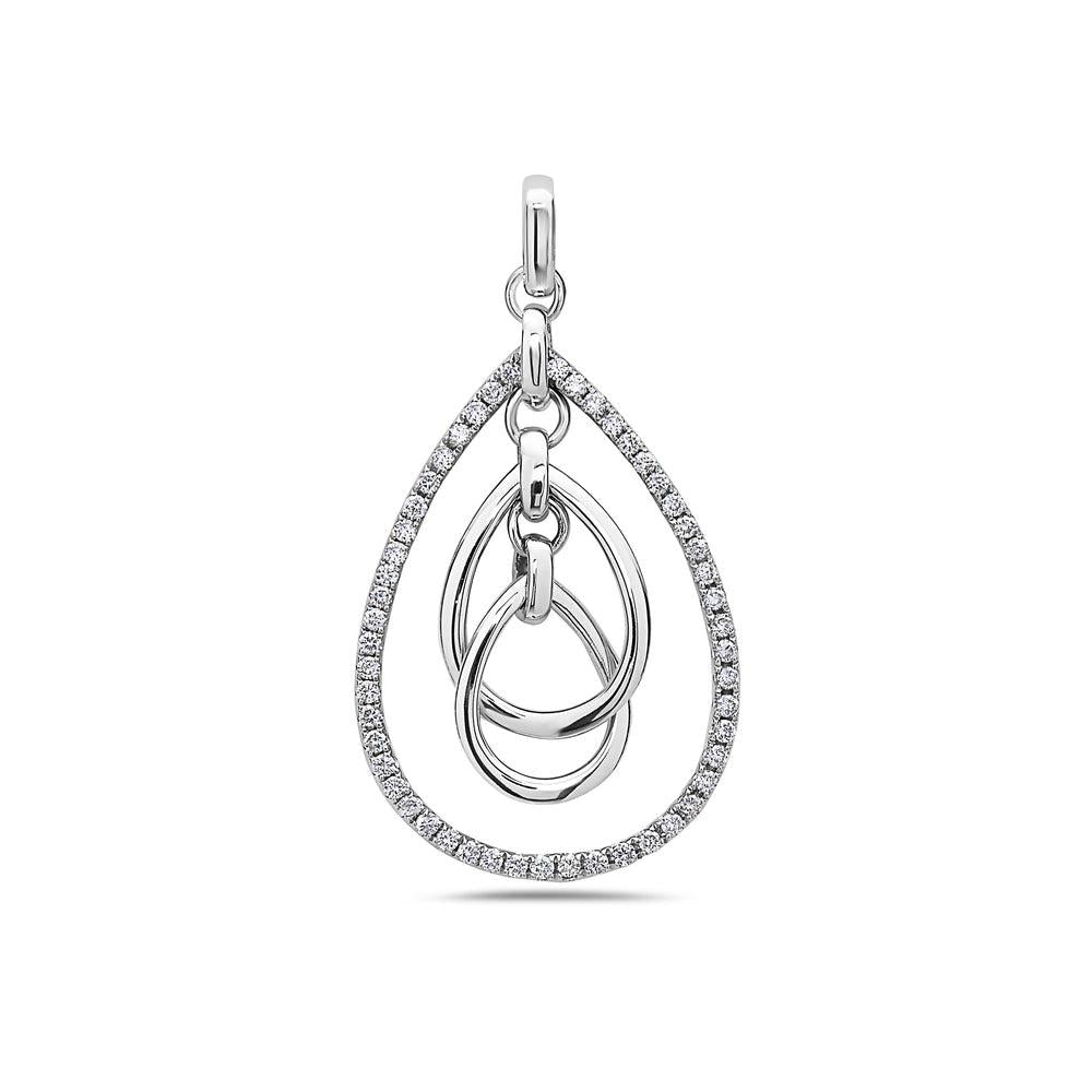 18K White Gold Floating Oval Chain Women's Pendant with 0.40CT Diamonds