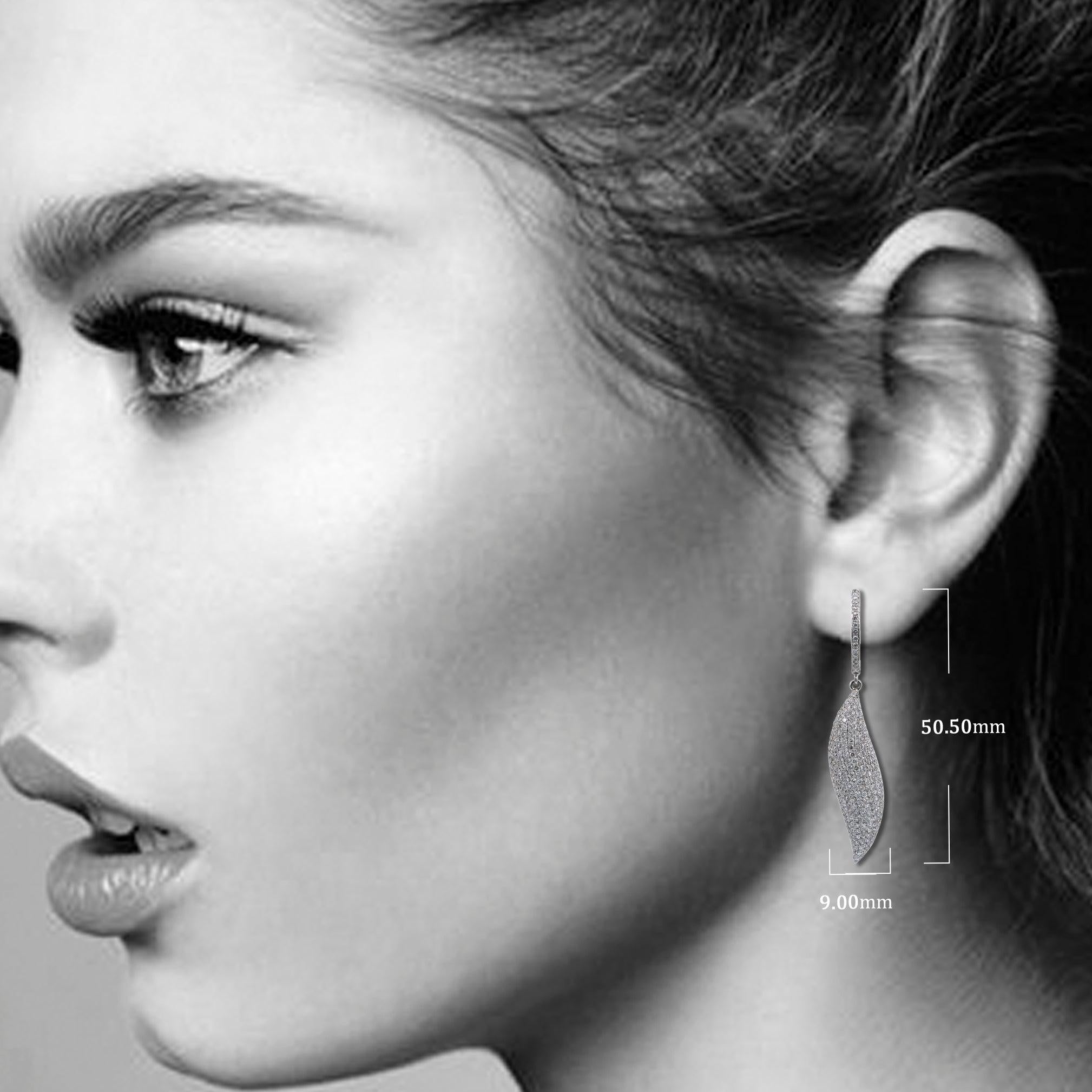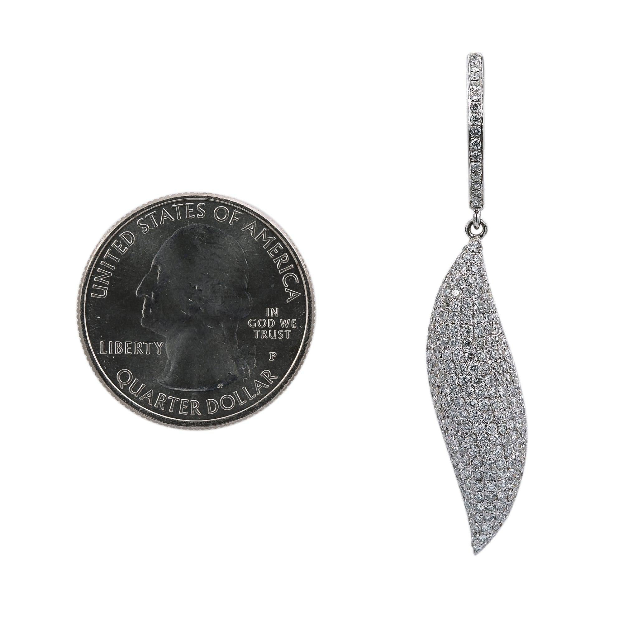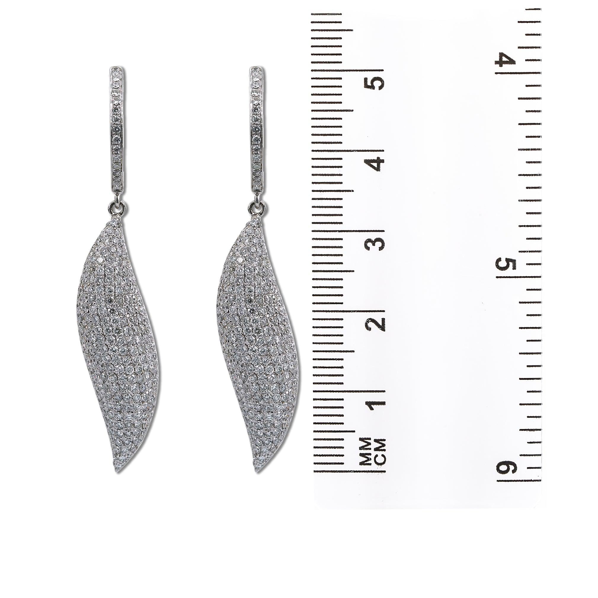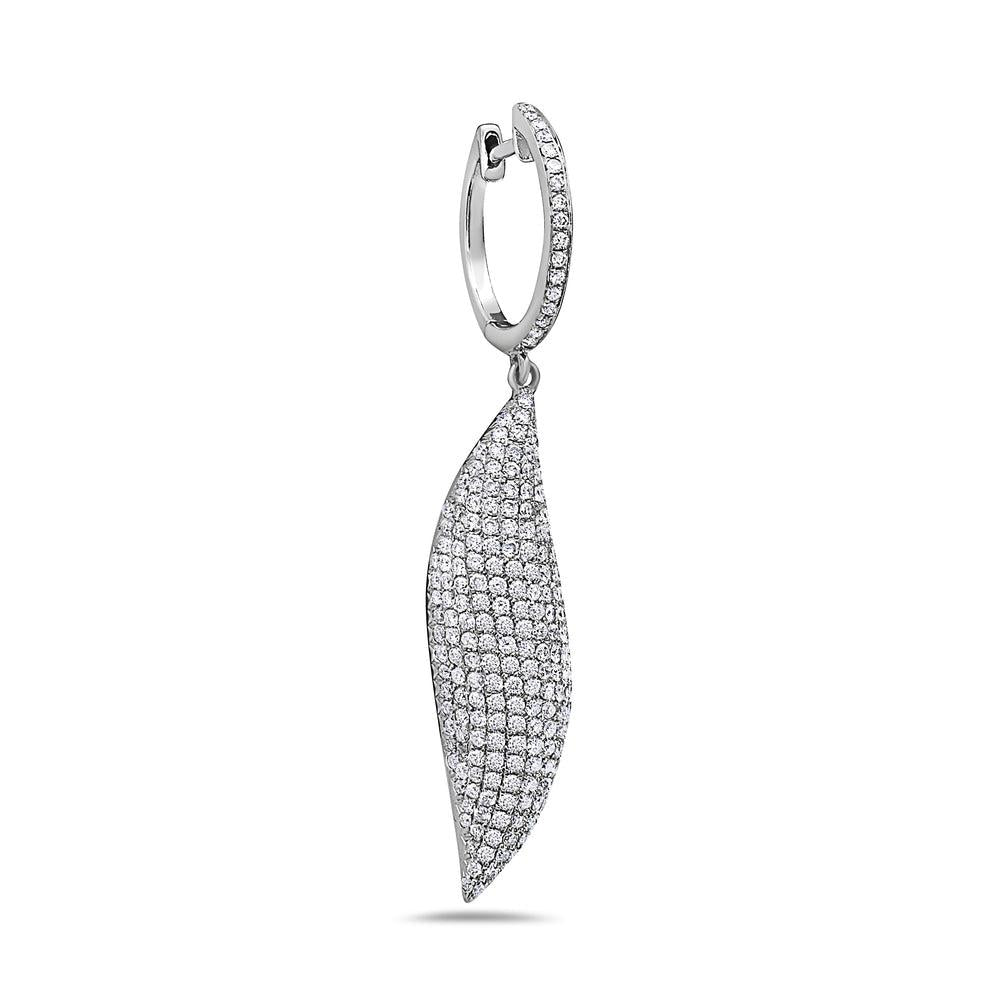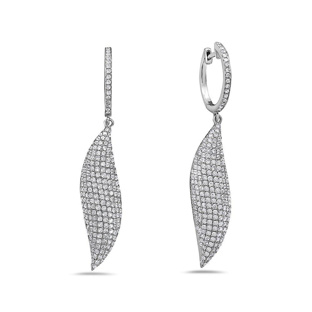 18K White Gold Ladies Leaf Shaped Earrings With Diamonds