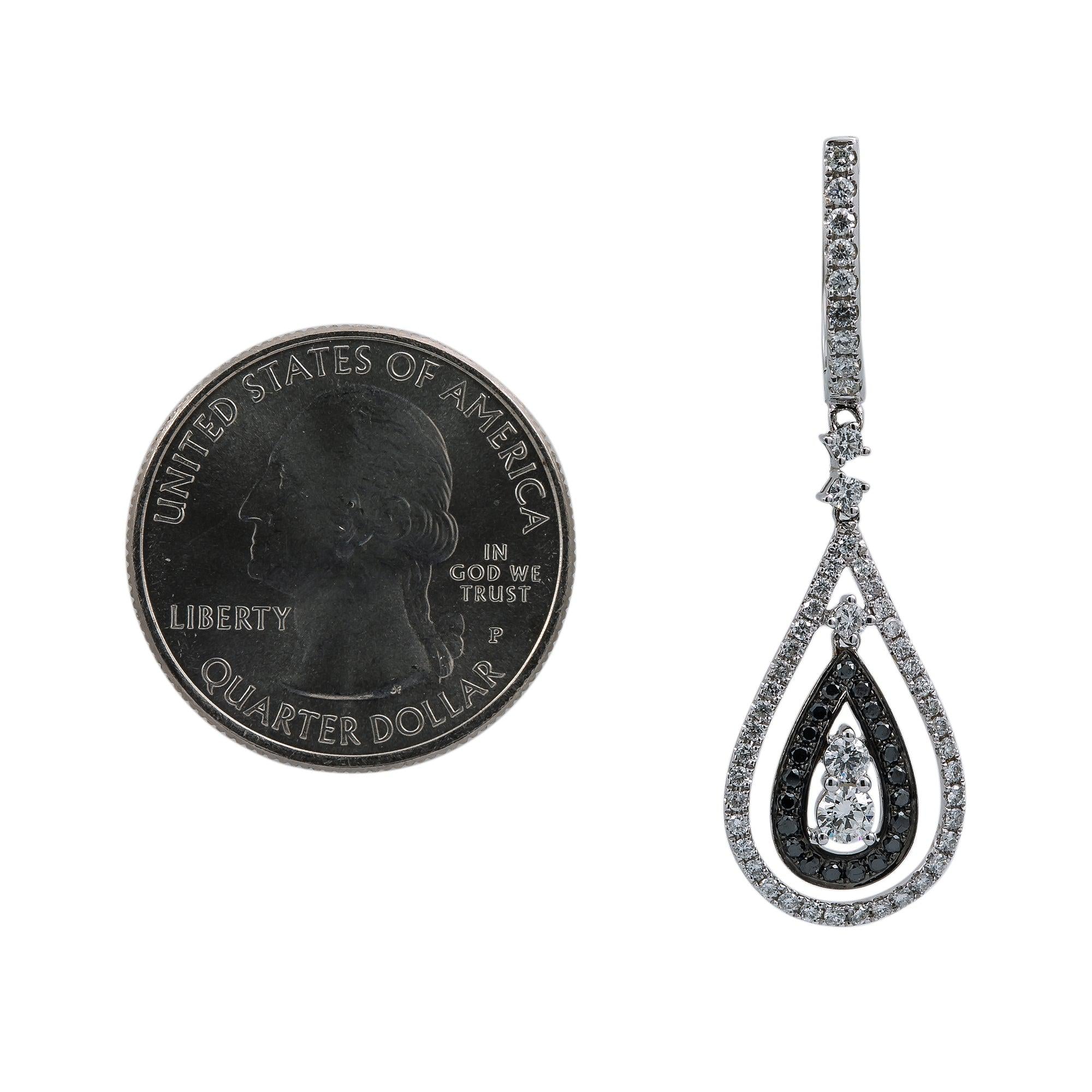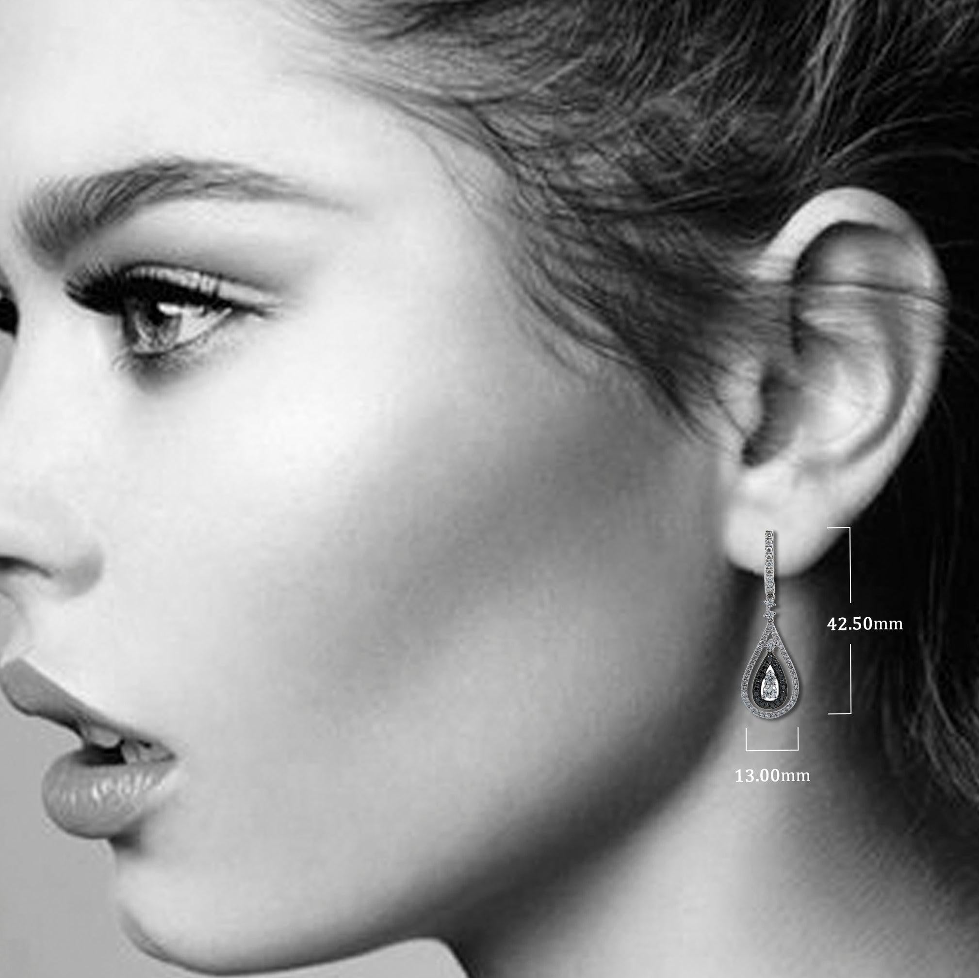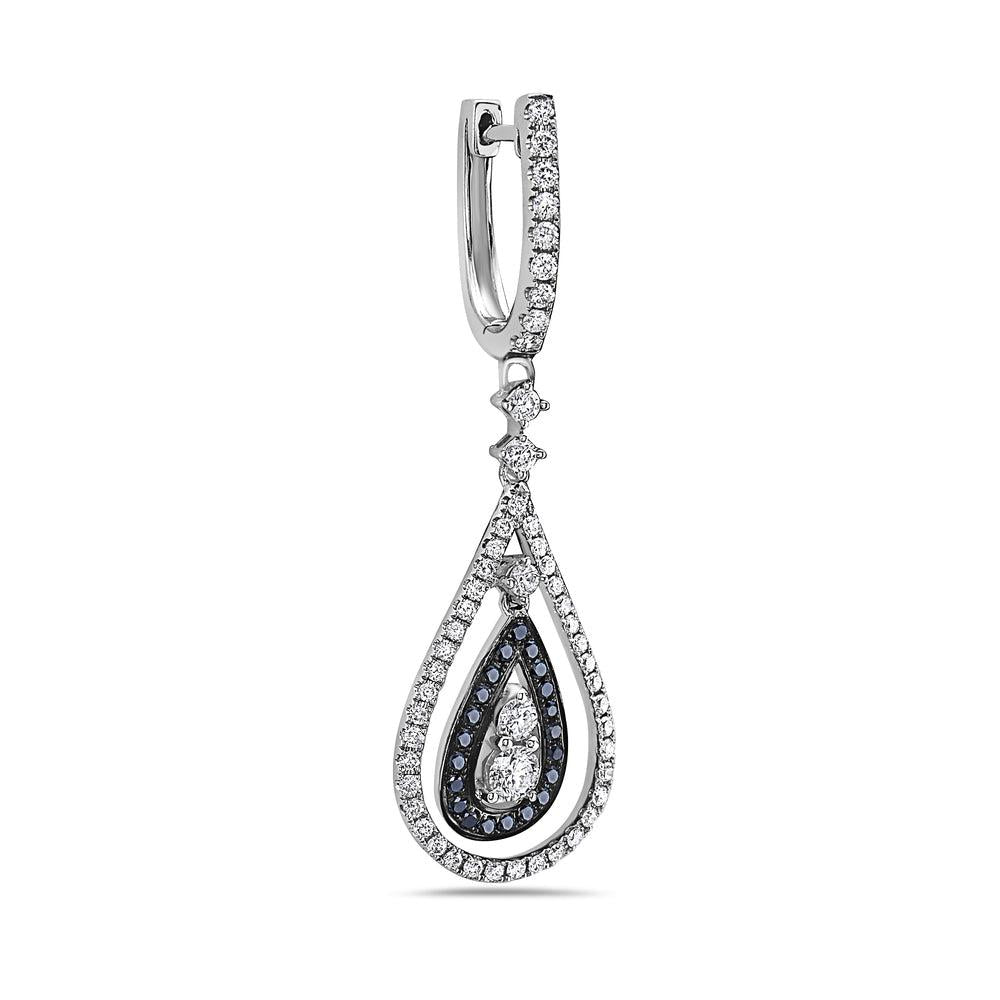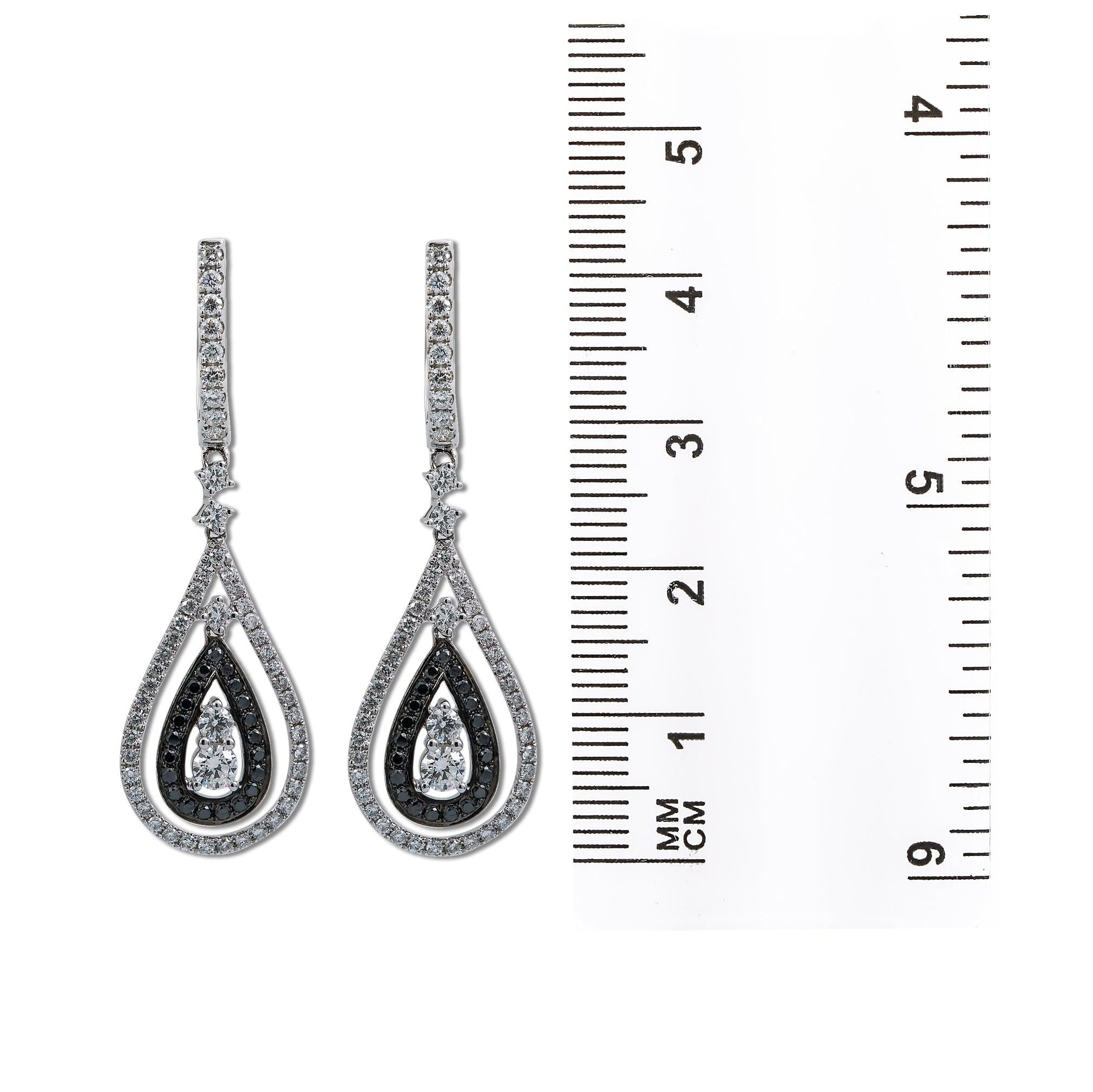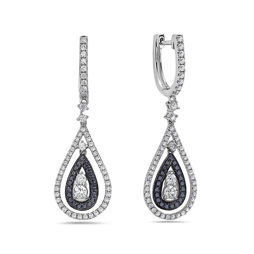 18K White Gold Ladies Tears Shaped Earrings With Black And White Diamonds