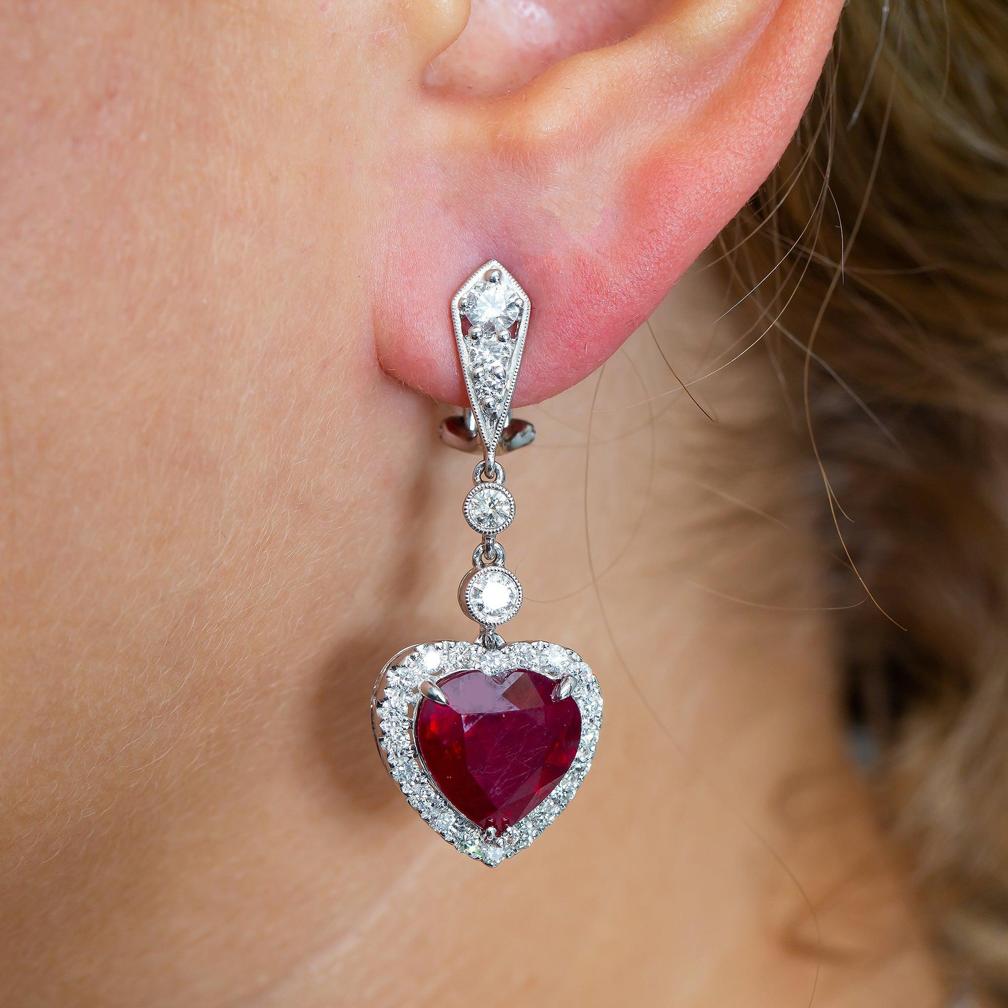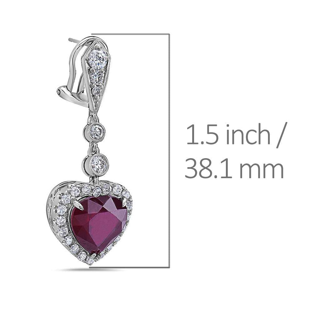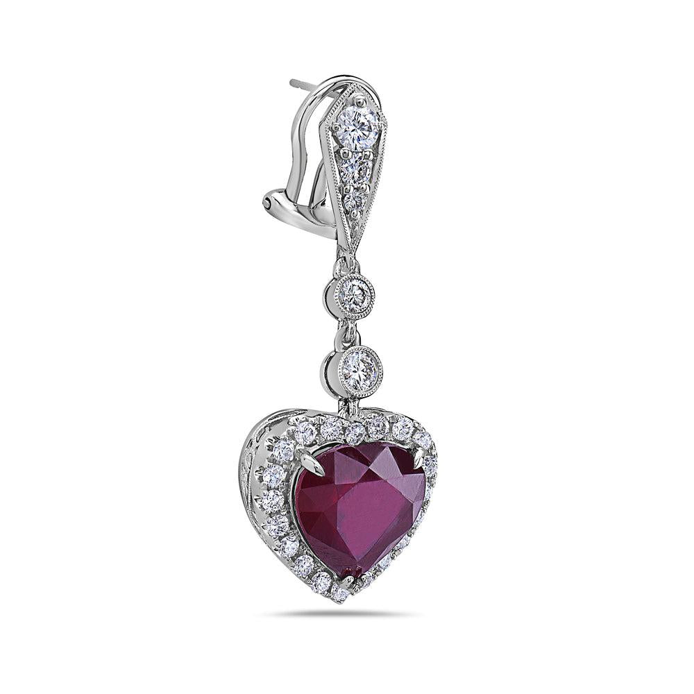 18K White Gold Ladies Heart Shaped Earrings With Ruby And Diamonds