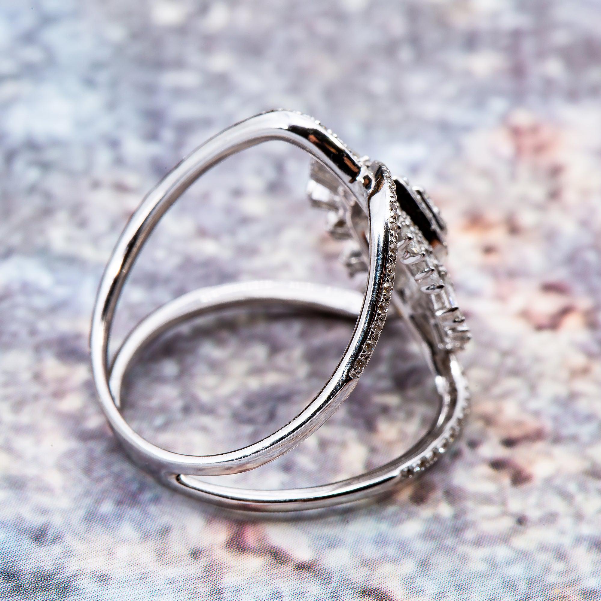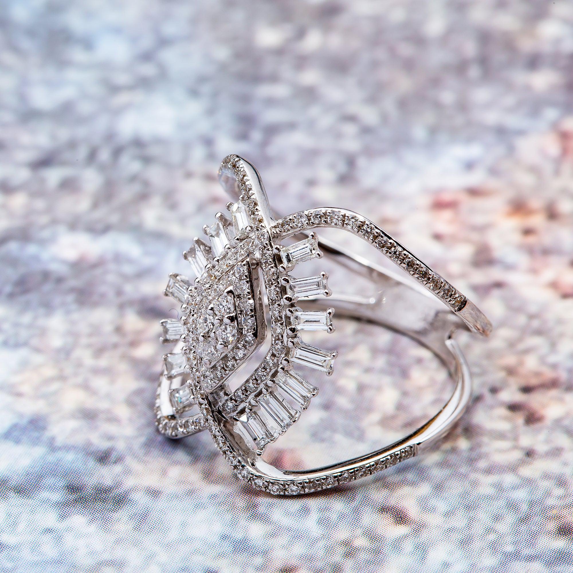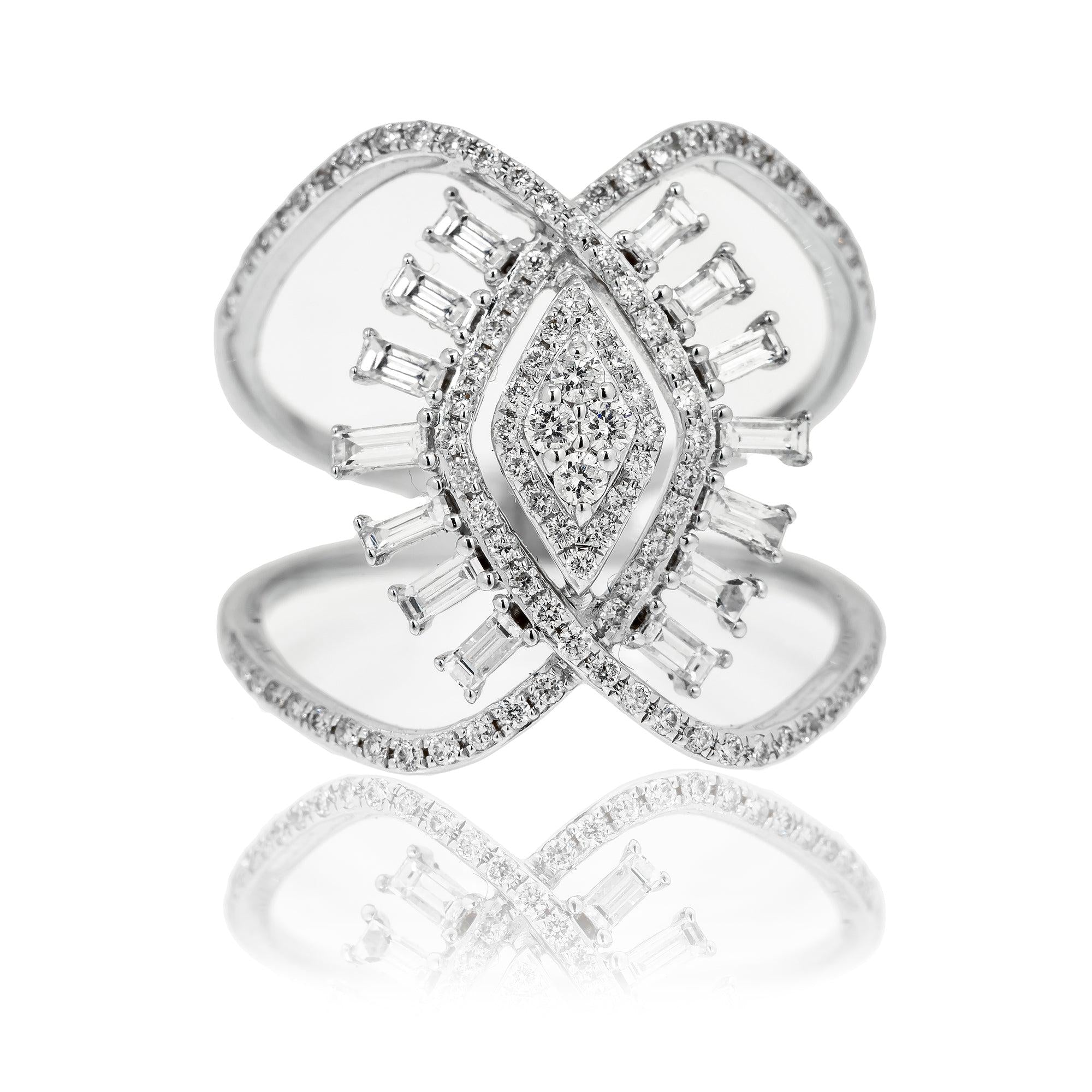 18K White Gold Ladies Ring with 0.80 CT Round And Baguette Diamonds