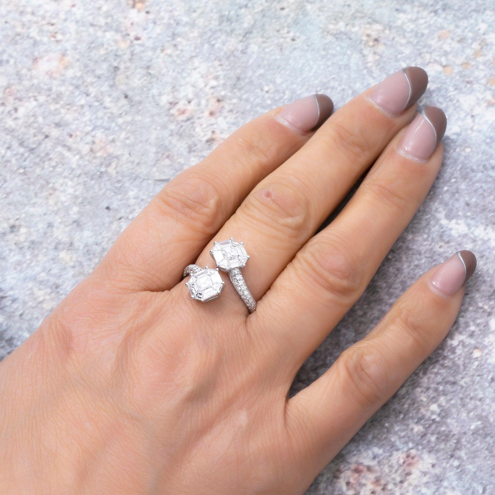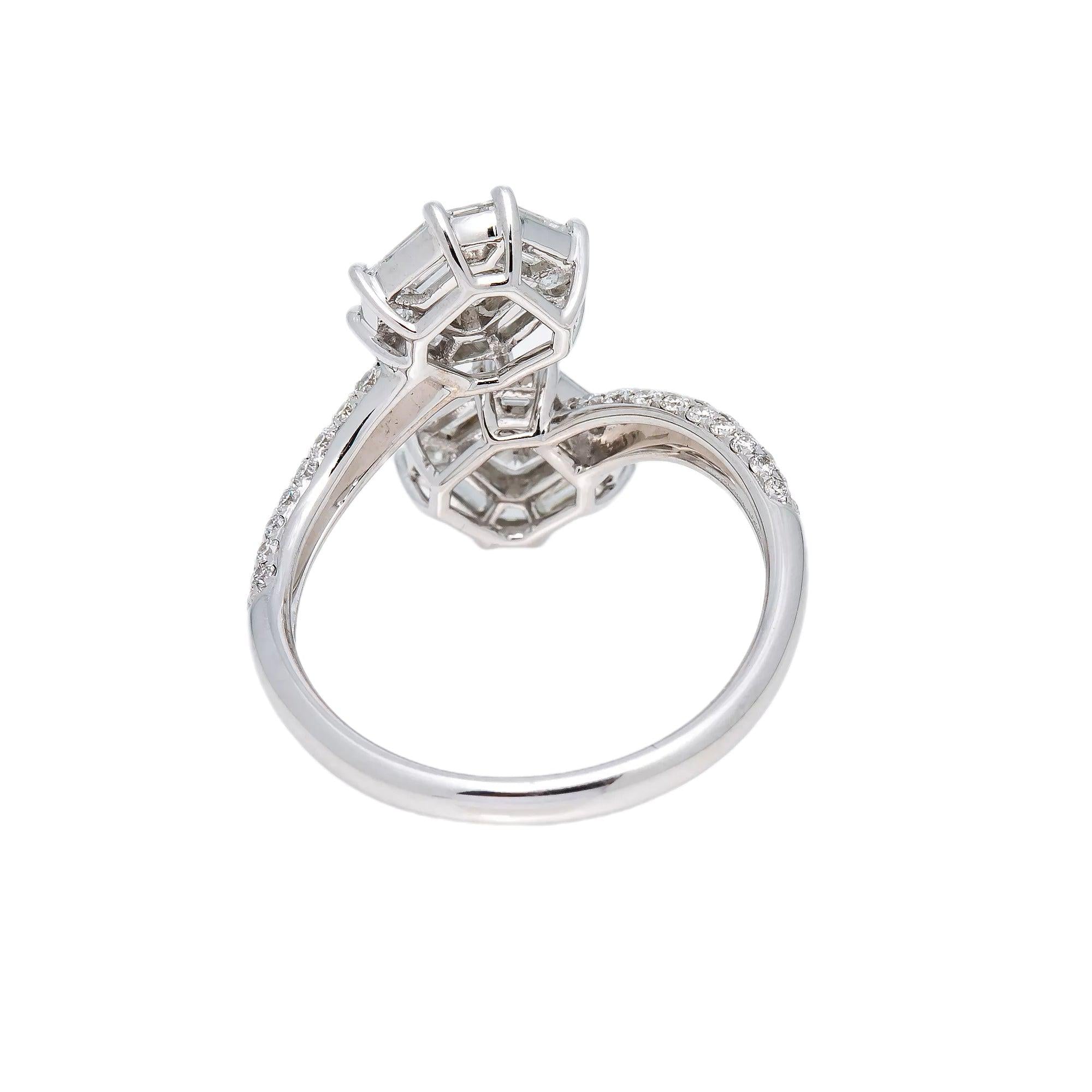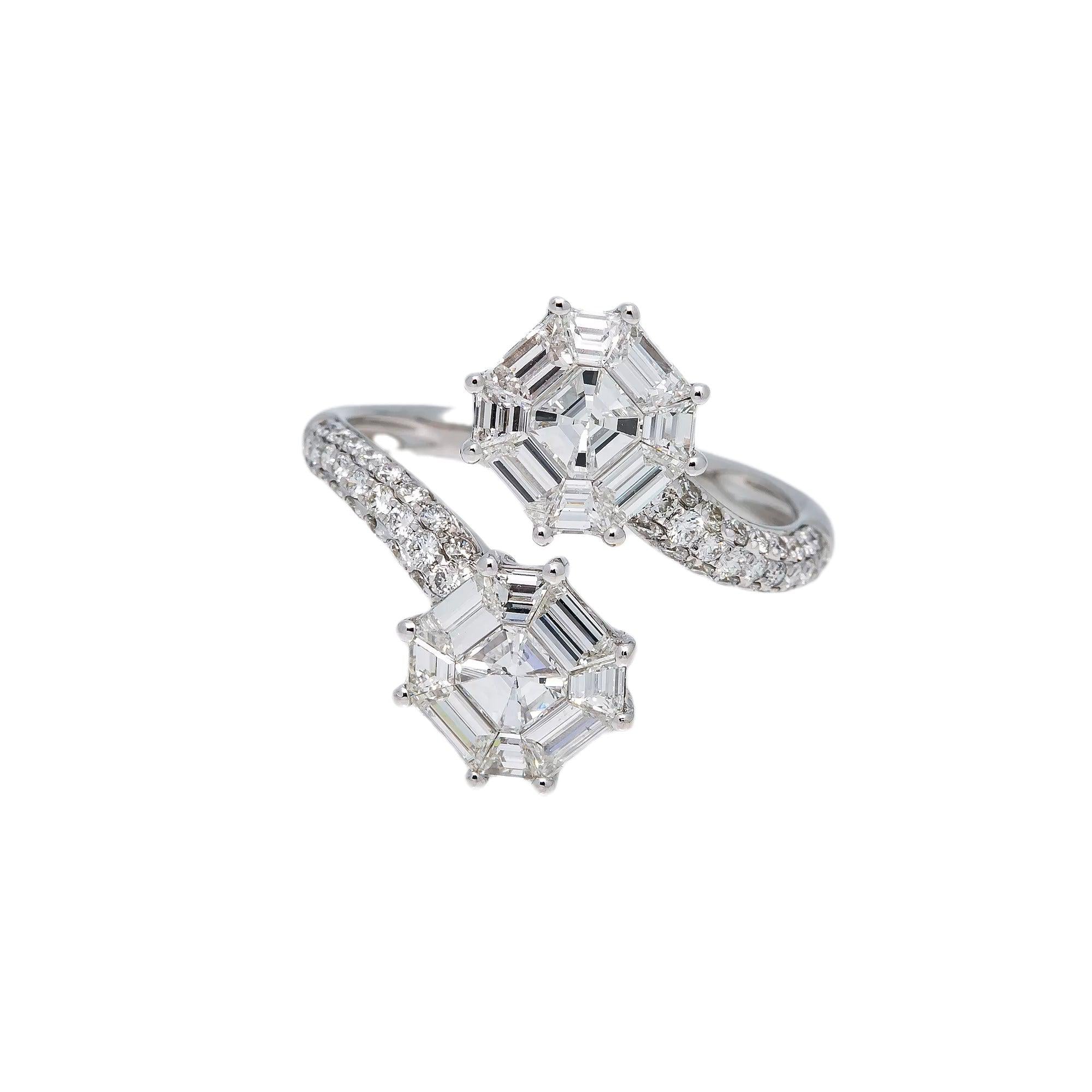 18K WHITE GOLD NAIL BAGUETTE LADIES RING WITH 1.44 CT DIAMONDS