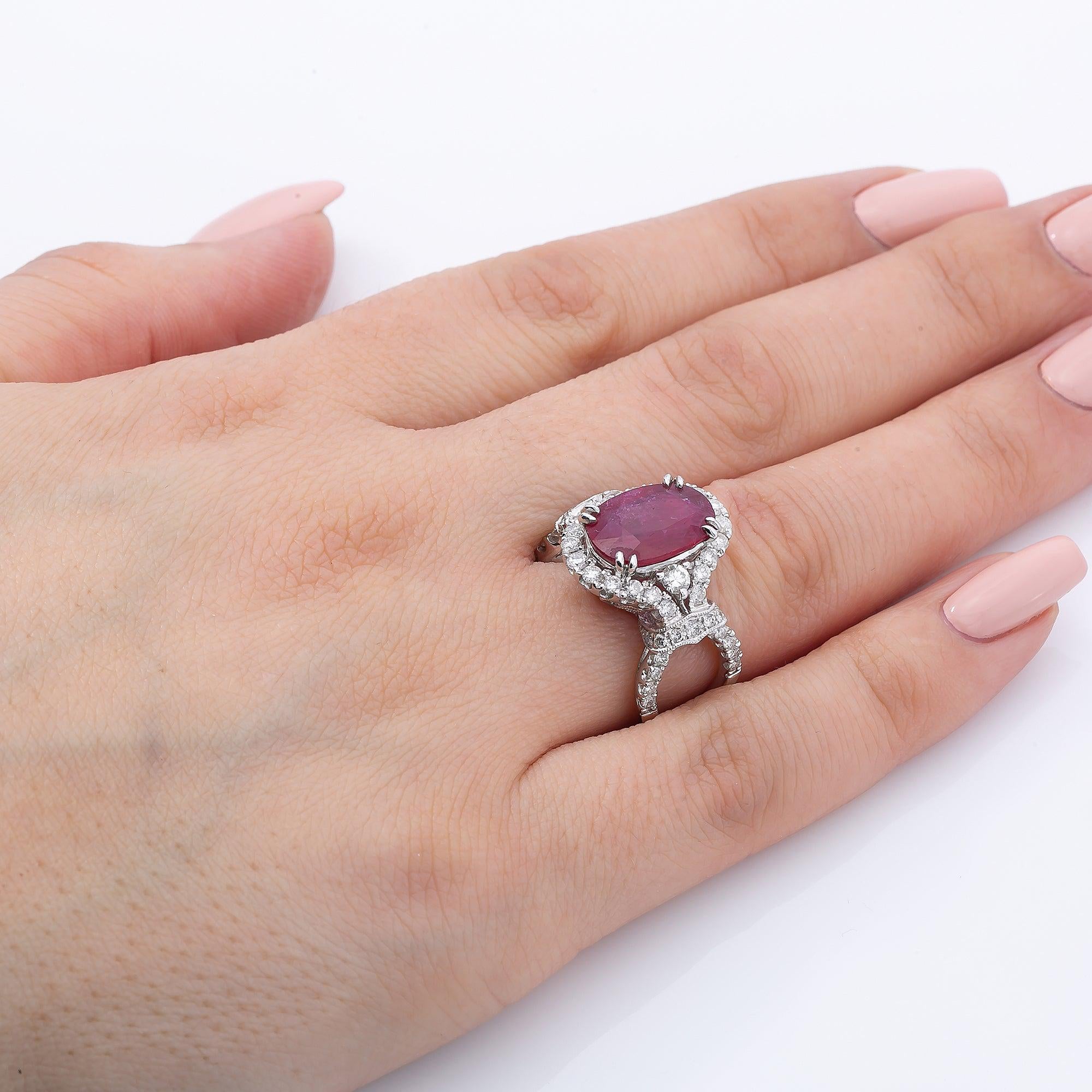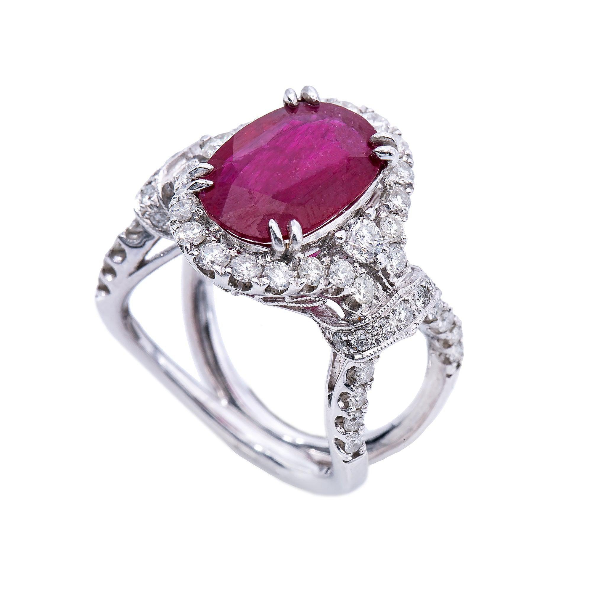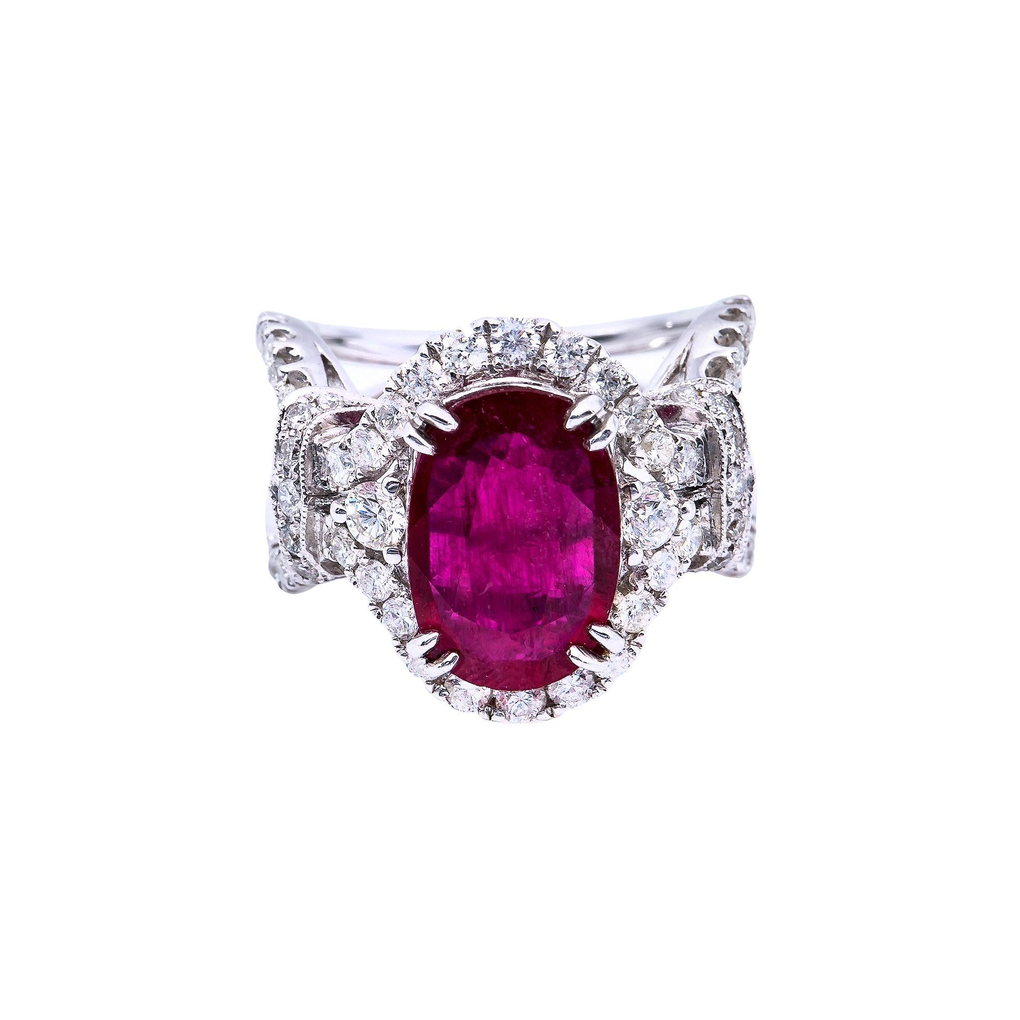 18K White Gold Oval Shaped Ruby Diamond And Gemstone Ring