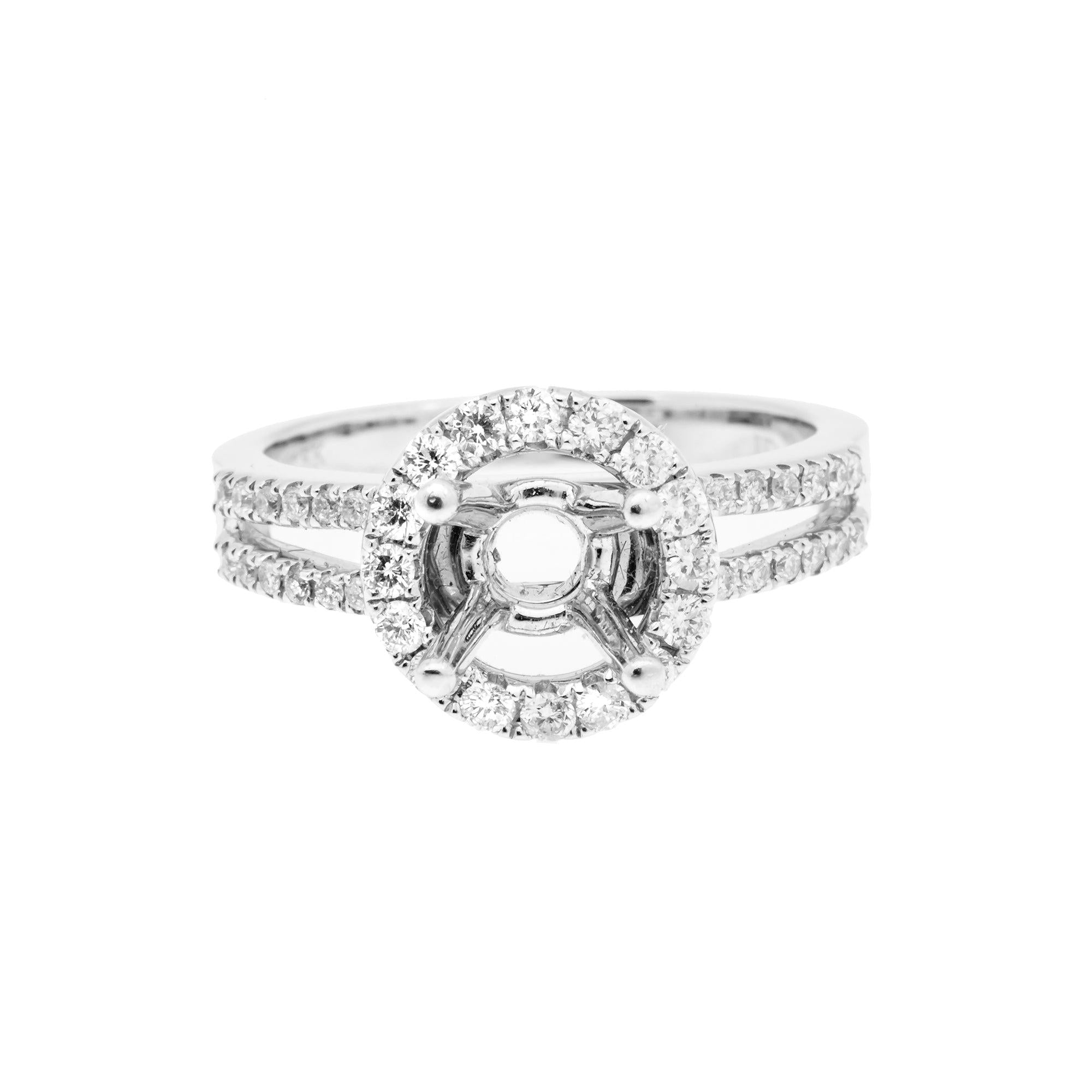 18K White Semi Mount  Gold Round Shaped Ring