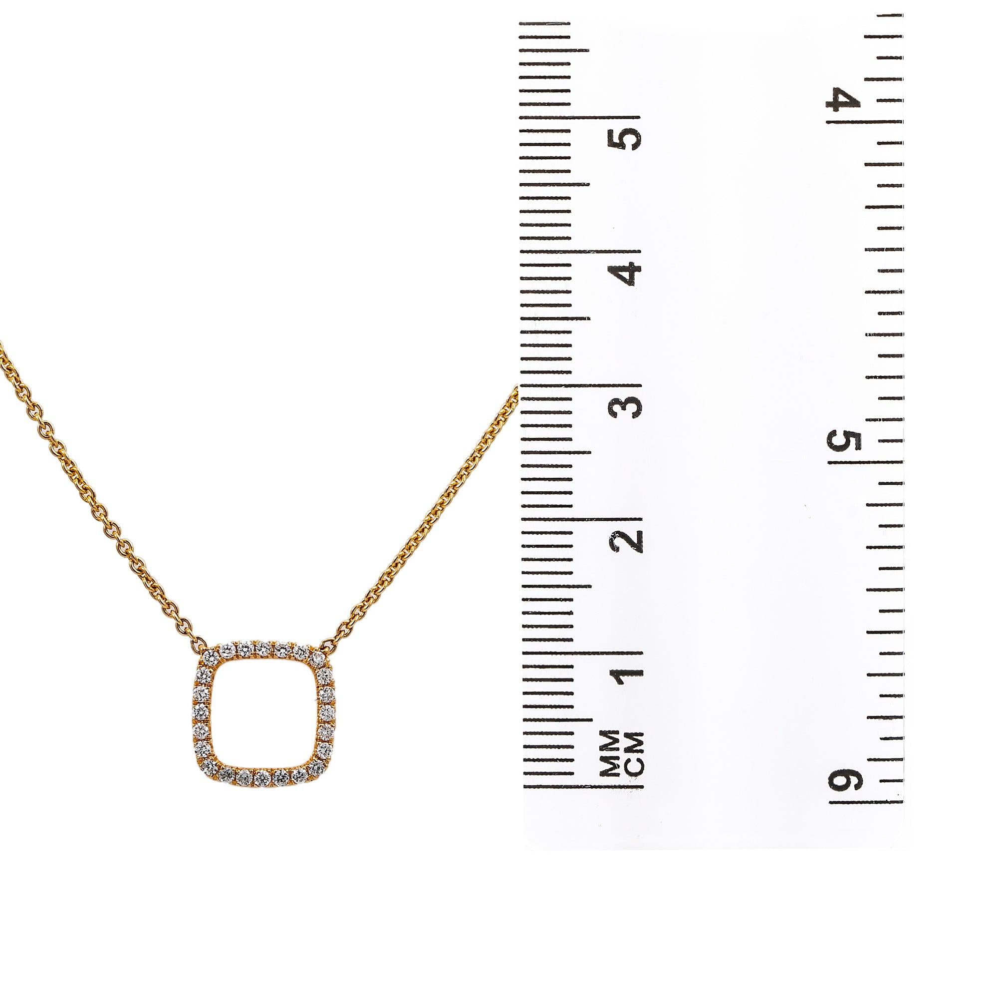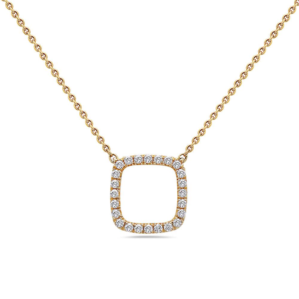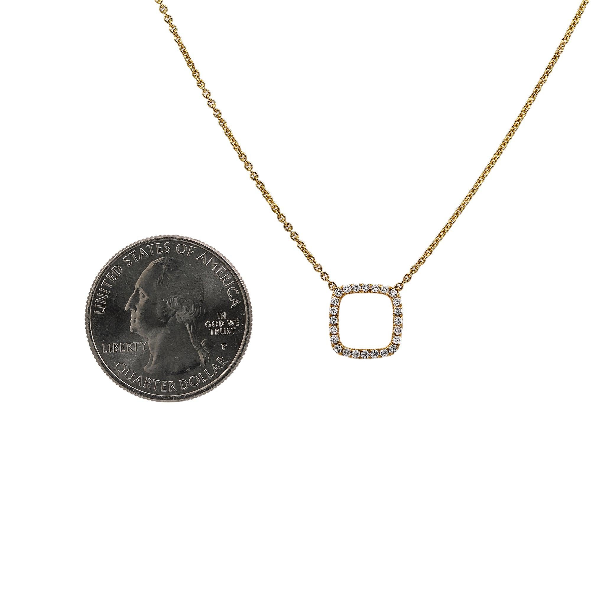 18K Yellow Gold Square-Shaped Women's Necklace, 18" chain and diamonds