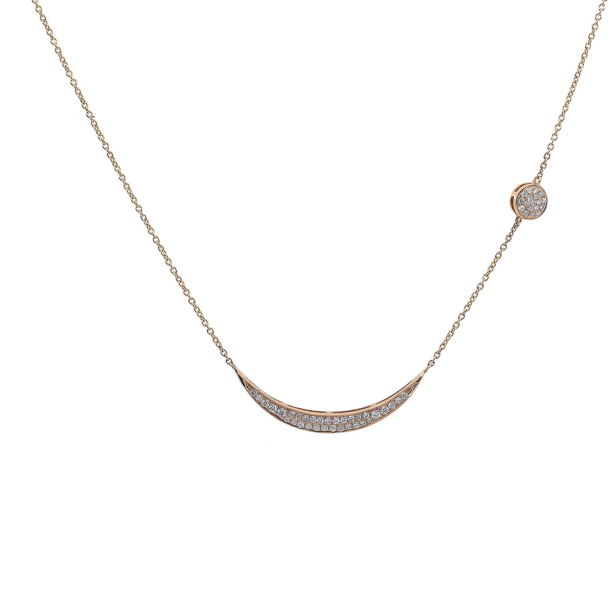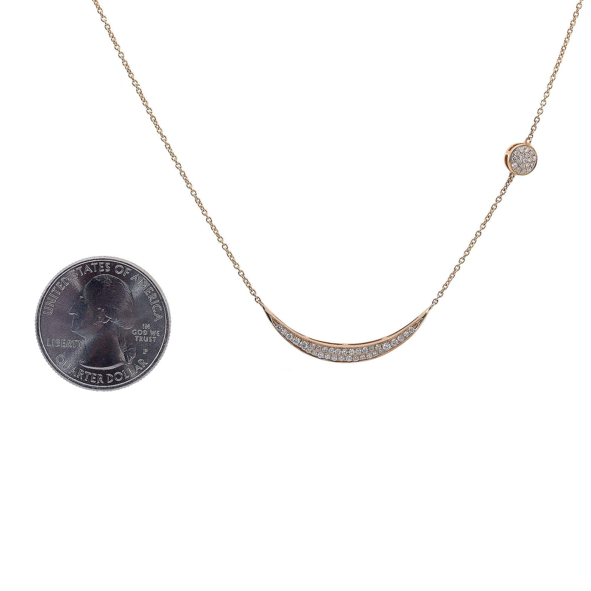 18K Yellow Gold Diamond Moon Shaped Necklace with Round Pin