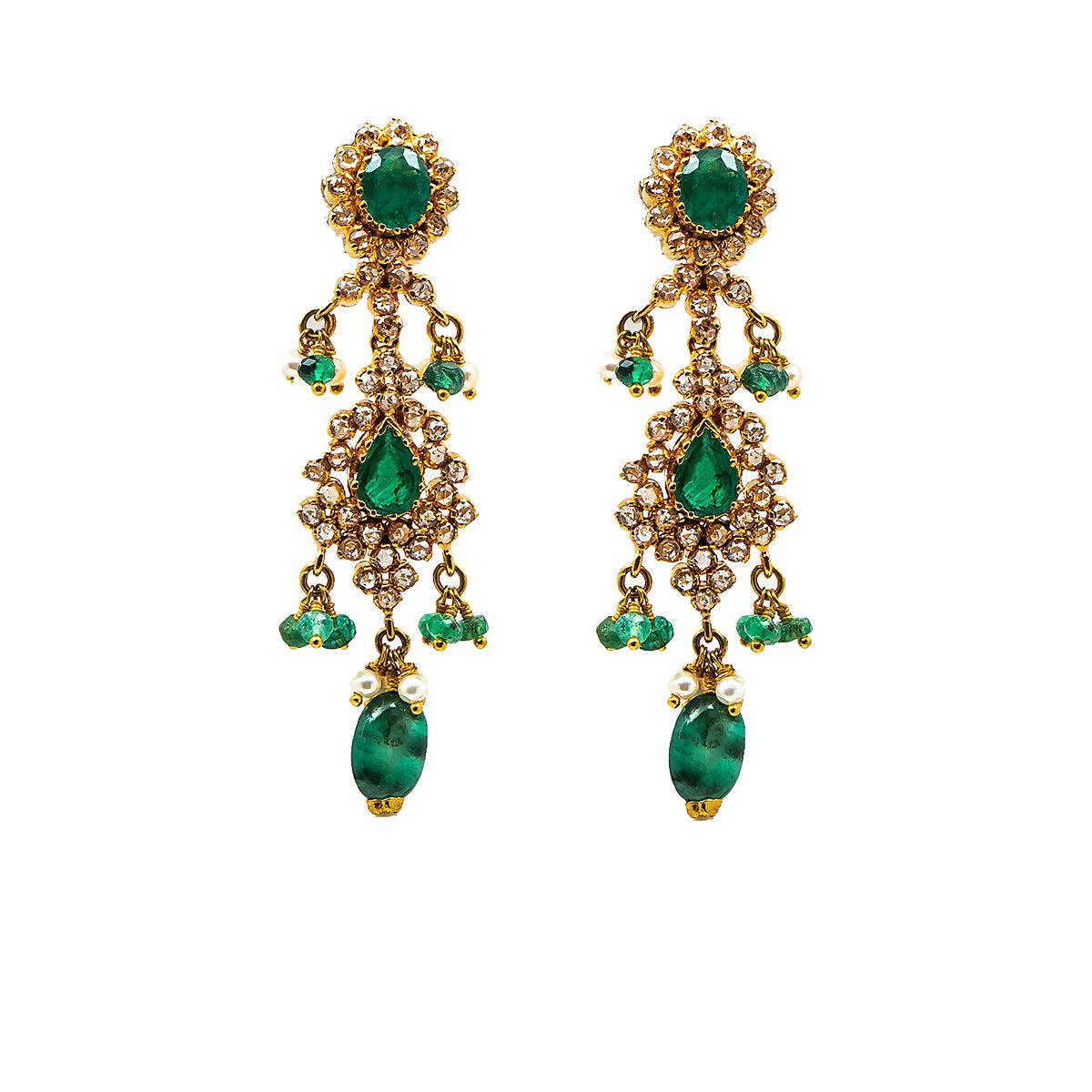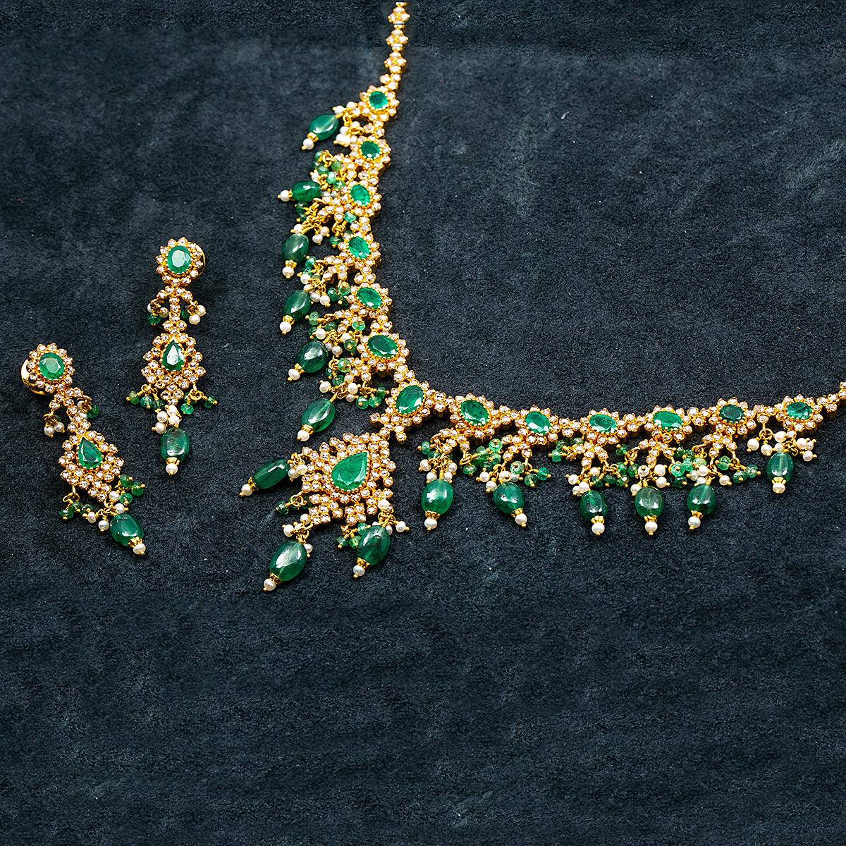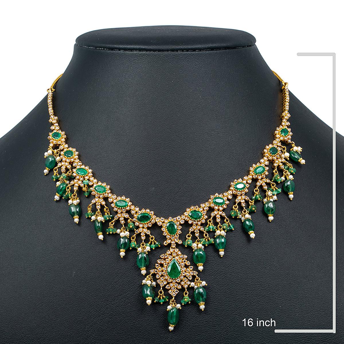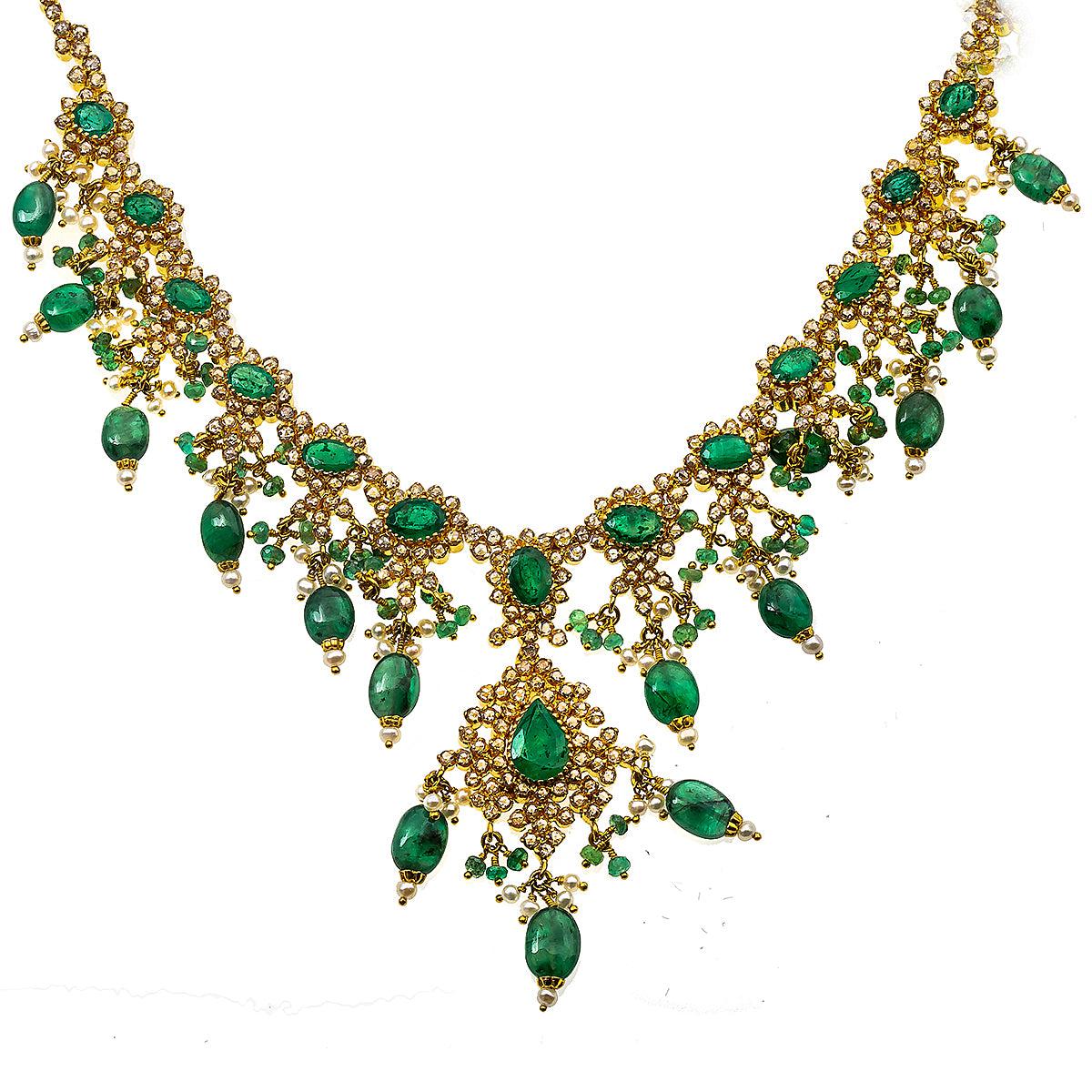 22K Yellow Gold and 16" Emerald Necklace With 15.00 CT Diamonds
