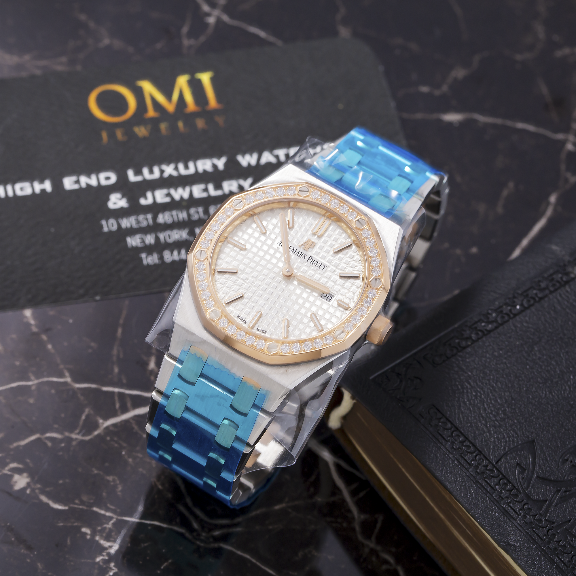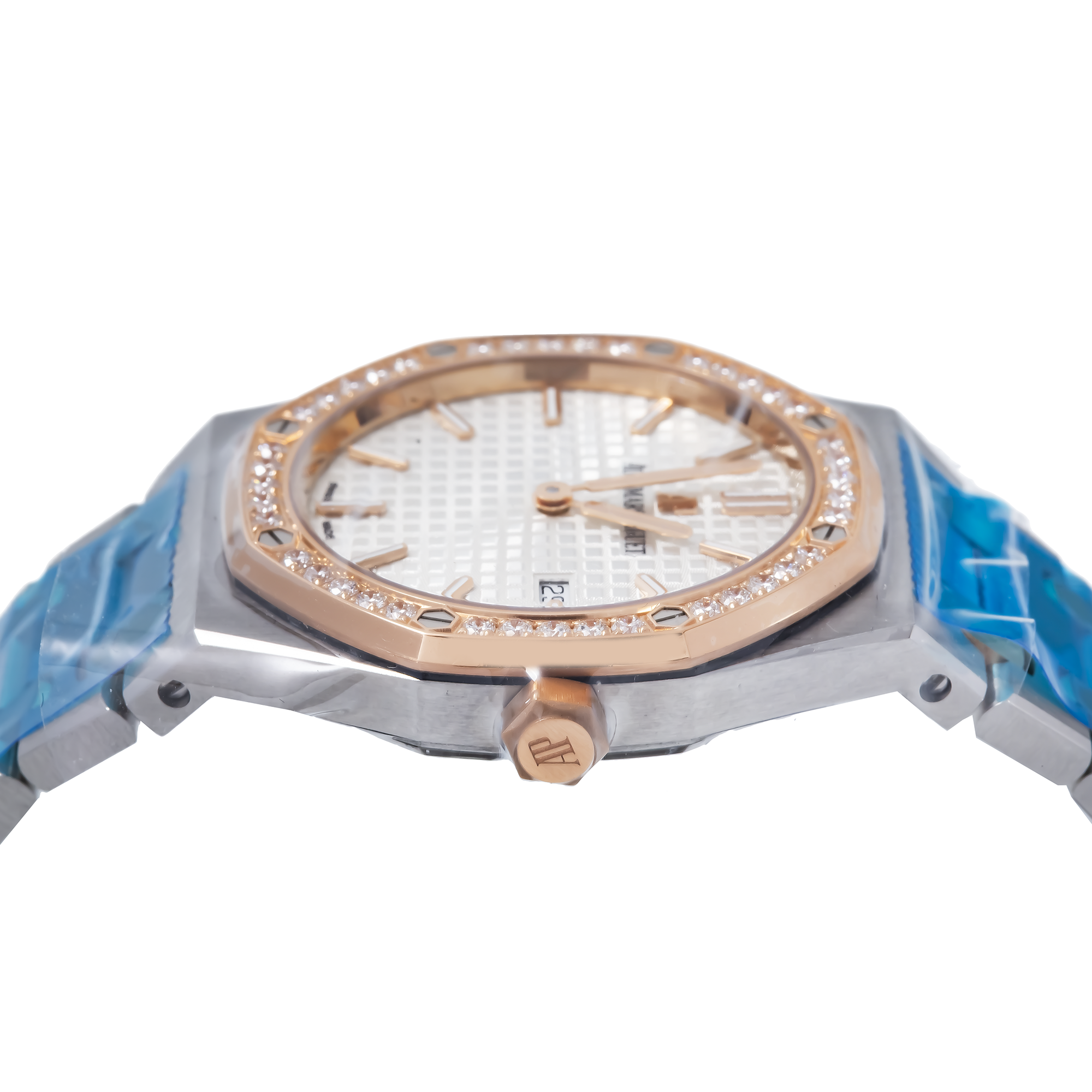 Audemars Piguet Royal Oak 67651SR 33MM White Dial And Rose Gold Diamond Bezel
