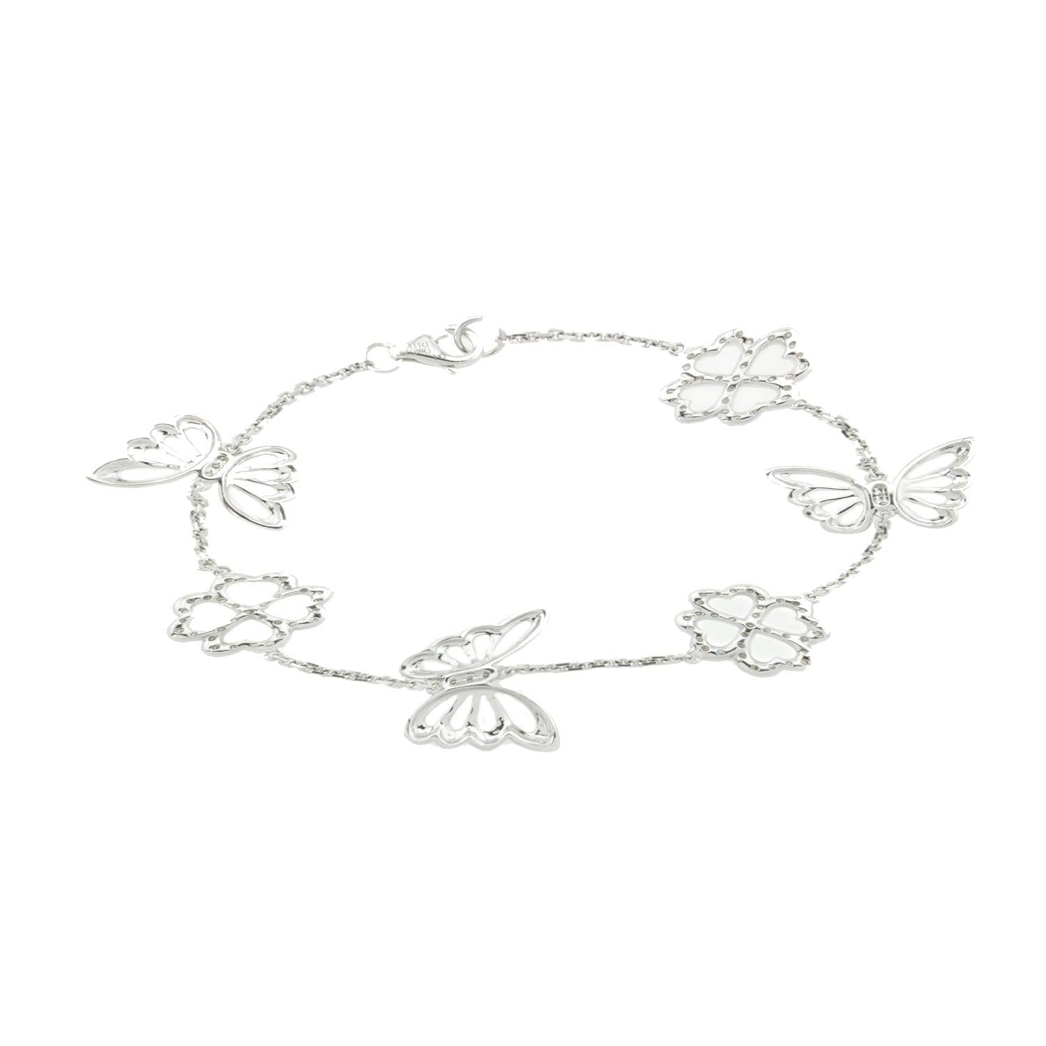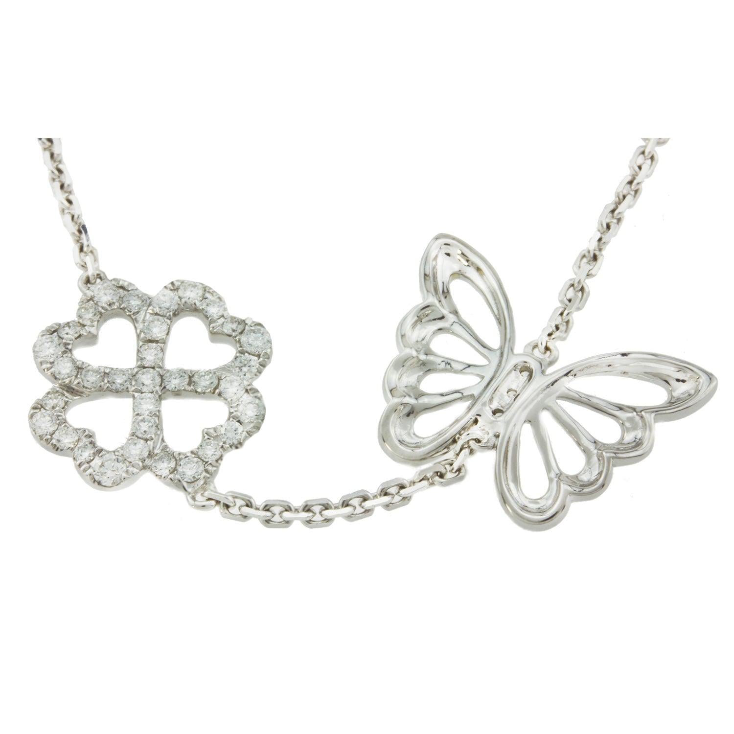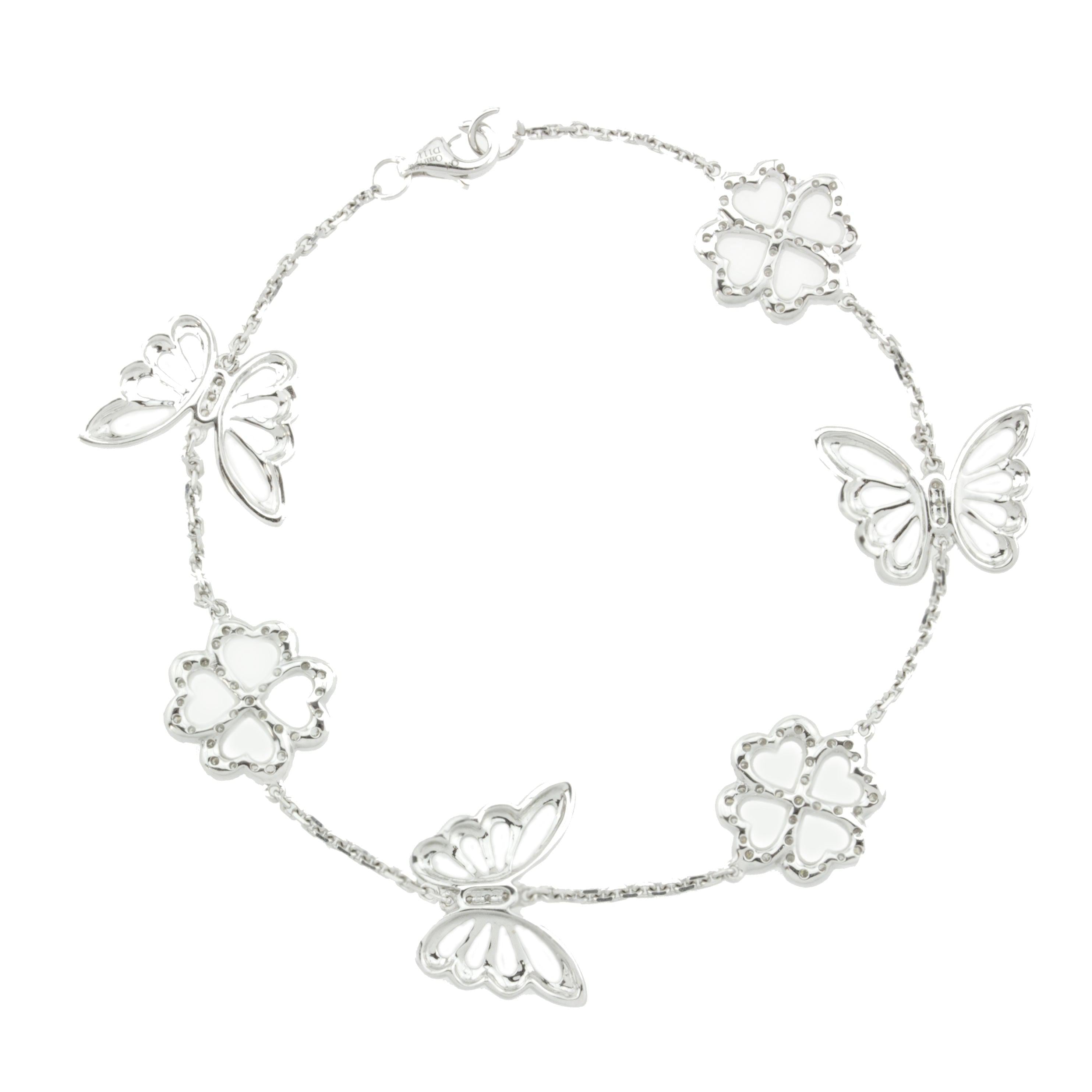 18K White Gold Bracelet with Diamond Flowers and Butterfly With Round Cut Diamonds 1.11CT