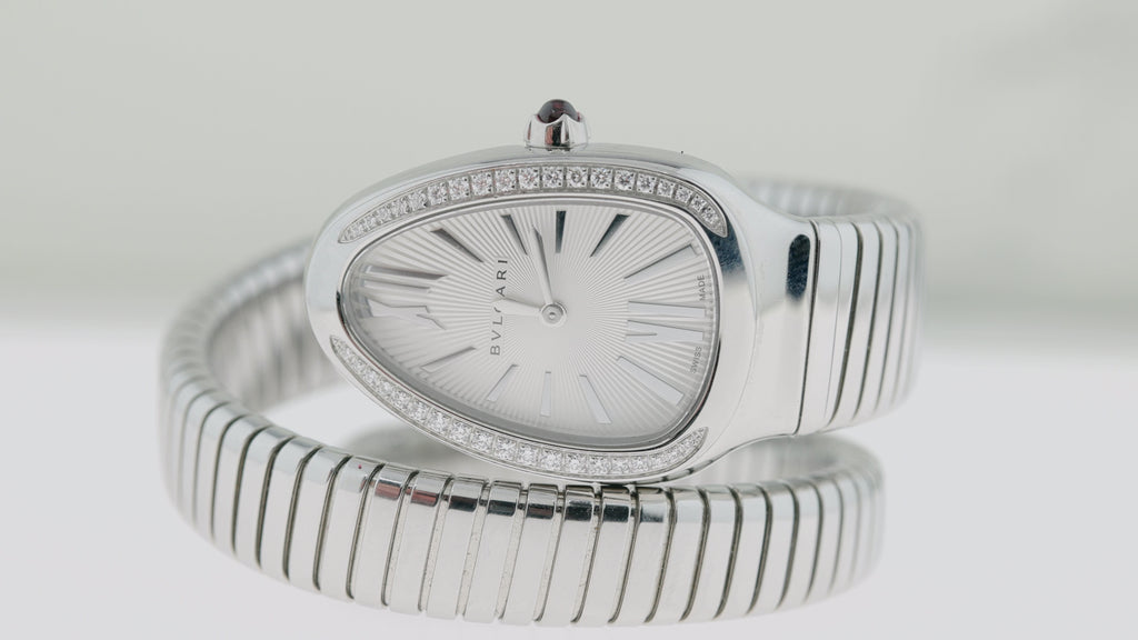 BULGARI SERPENTI TUBOGAS 101827 STAINLESS STEEL DIAMOND SILVER DIAL LADIES WATCH