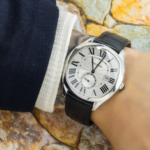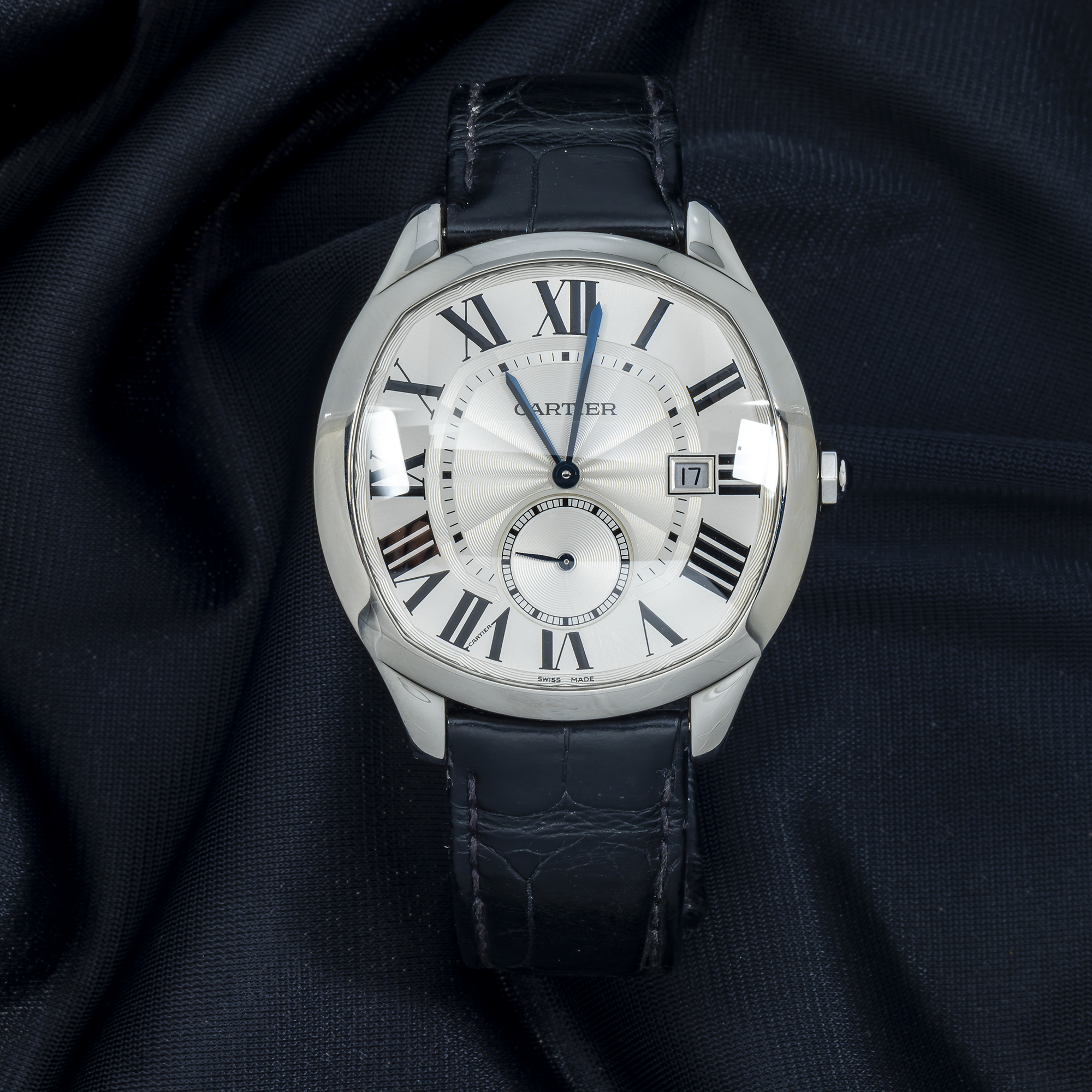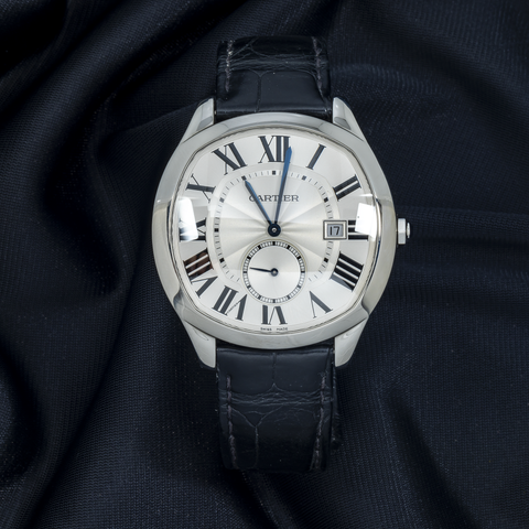 Cartier Drive WSNM0004 41MM Silver Guilloche Dial With Black Alligator Strap
