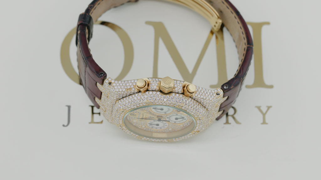 AUDEMARS PIGUET ROYAL OAK CHRONOGRAPH 26022BA 39MM SET WITH DIAMONDS - PAVE DIAL AND LEATHER BRACELET