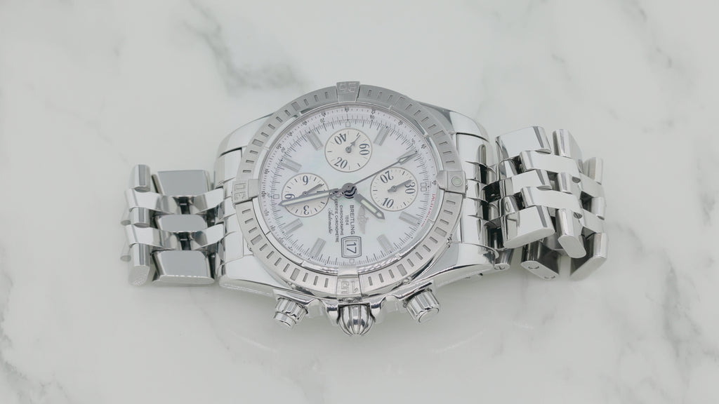 BREITLING CHRONOMAT EVOLUTION A13356 44MM WHITE DIAL WITH STAINLESS STEEL BRACELET