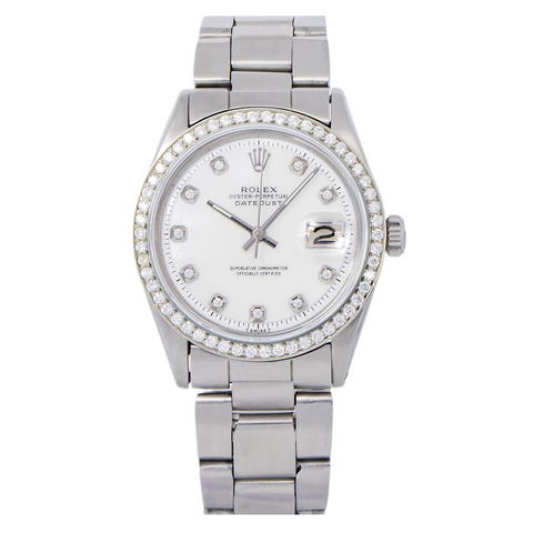 Rolex Datejust 36MM 1601 White Diamond Dial Diamond Bezel Stainless Steel Oyster Bracelet