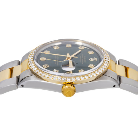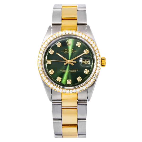 Rolex Datejust 36MM 1601 Green Diamond Dial Diamond Bezel Two Tone Yellow Gold Oyster Bracelet