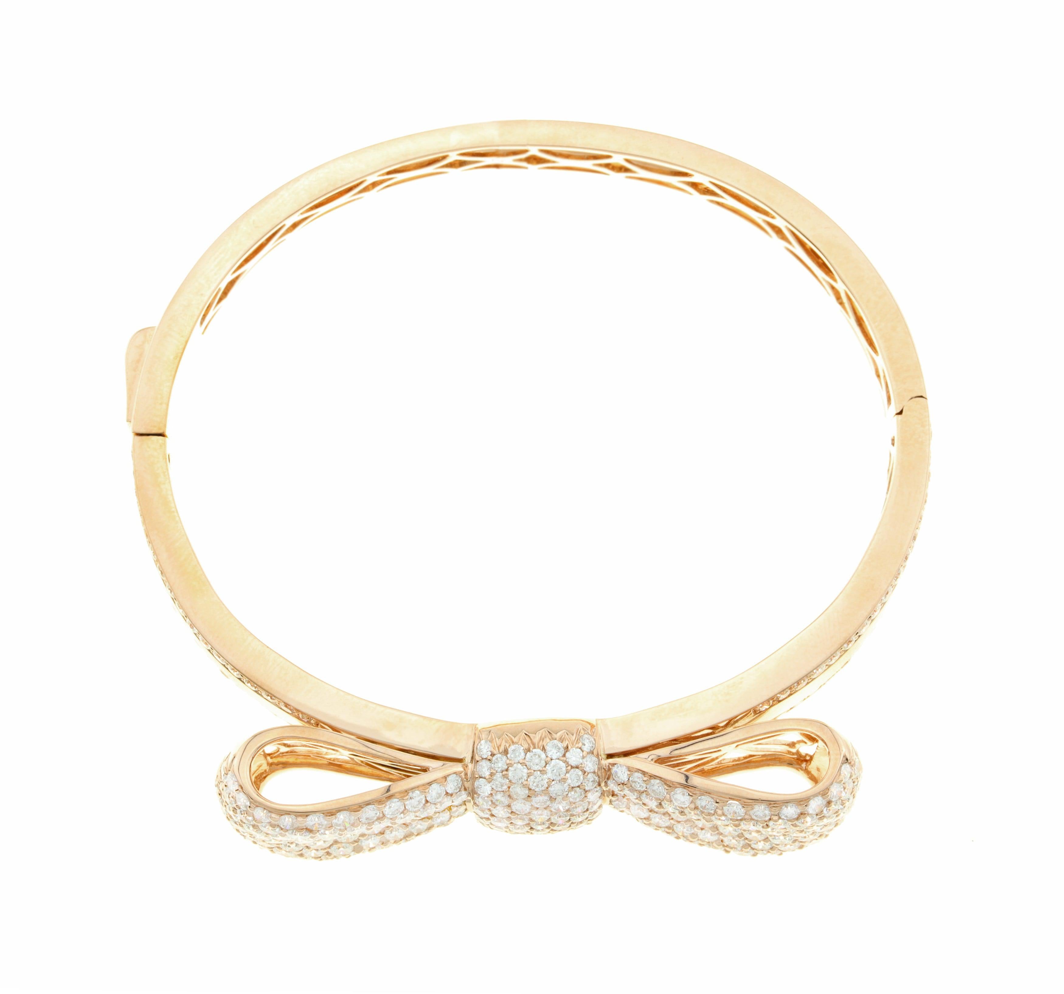 18K Yellow Gold Diamond Bow Design Bangle With Round Cut Diamonds 8.22CT