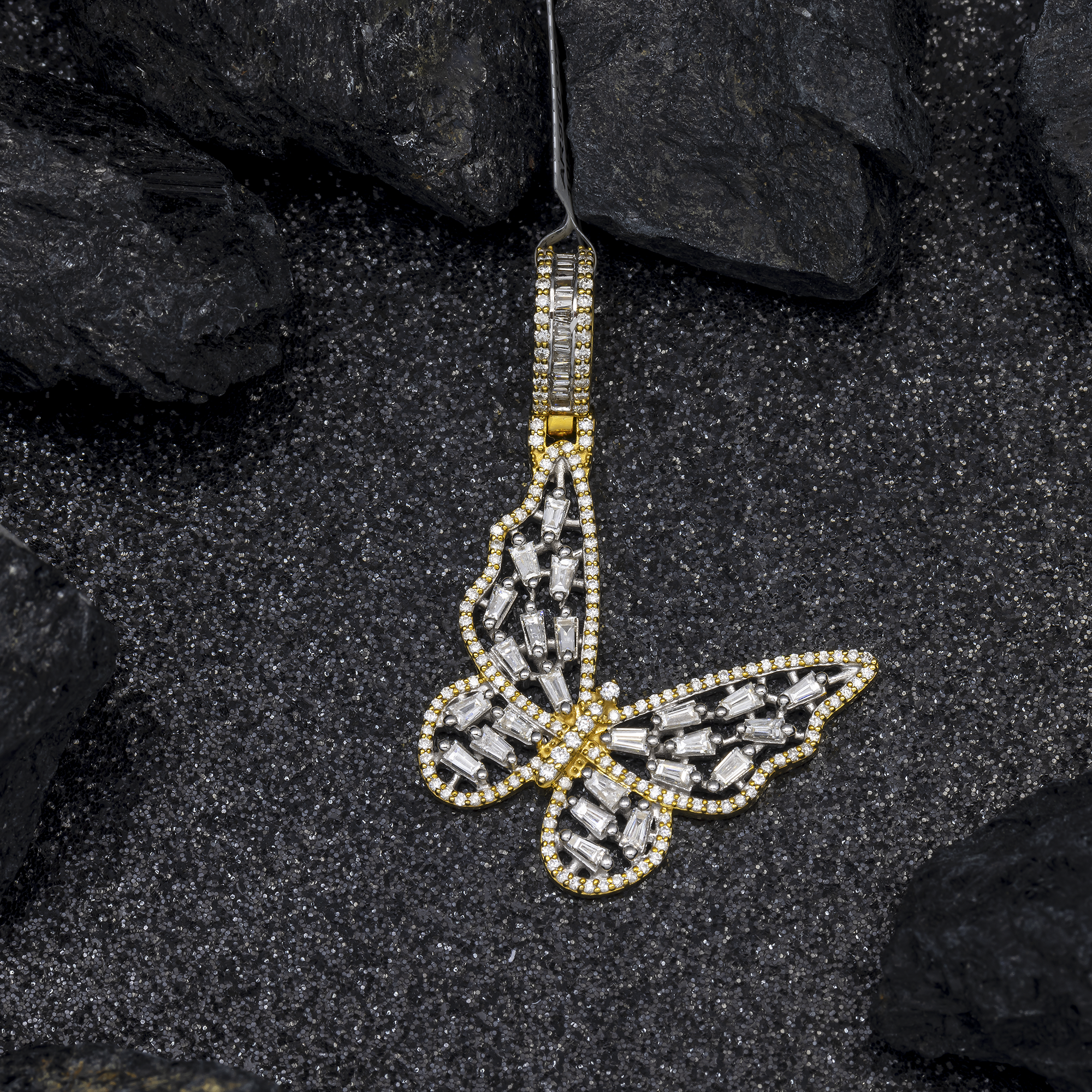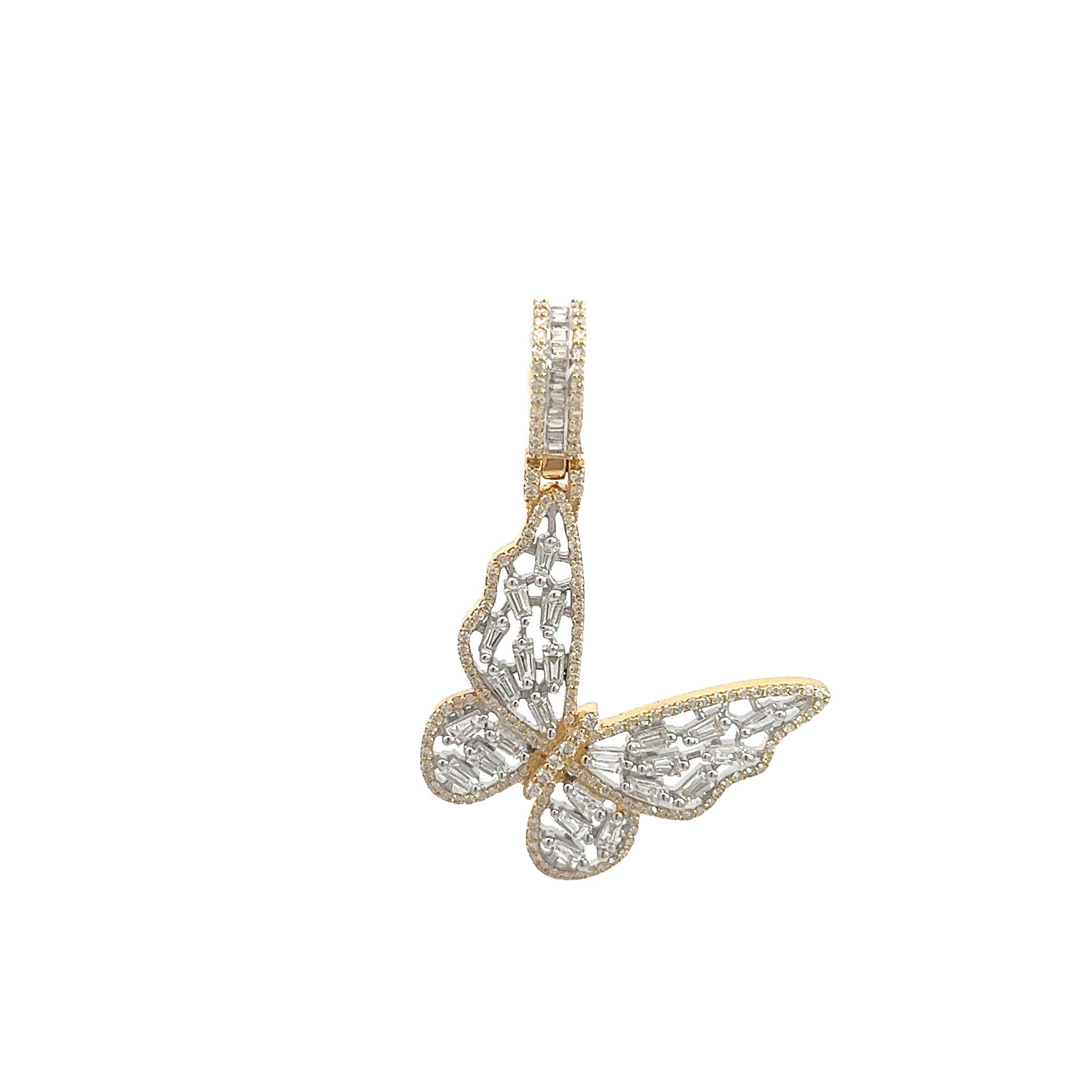 10K GOLD BAGUETTE AND ROUND DIAMOND BUTTERFLY PENDANT 1.61 CT