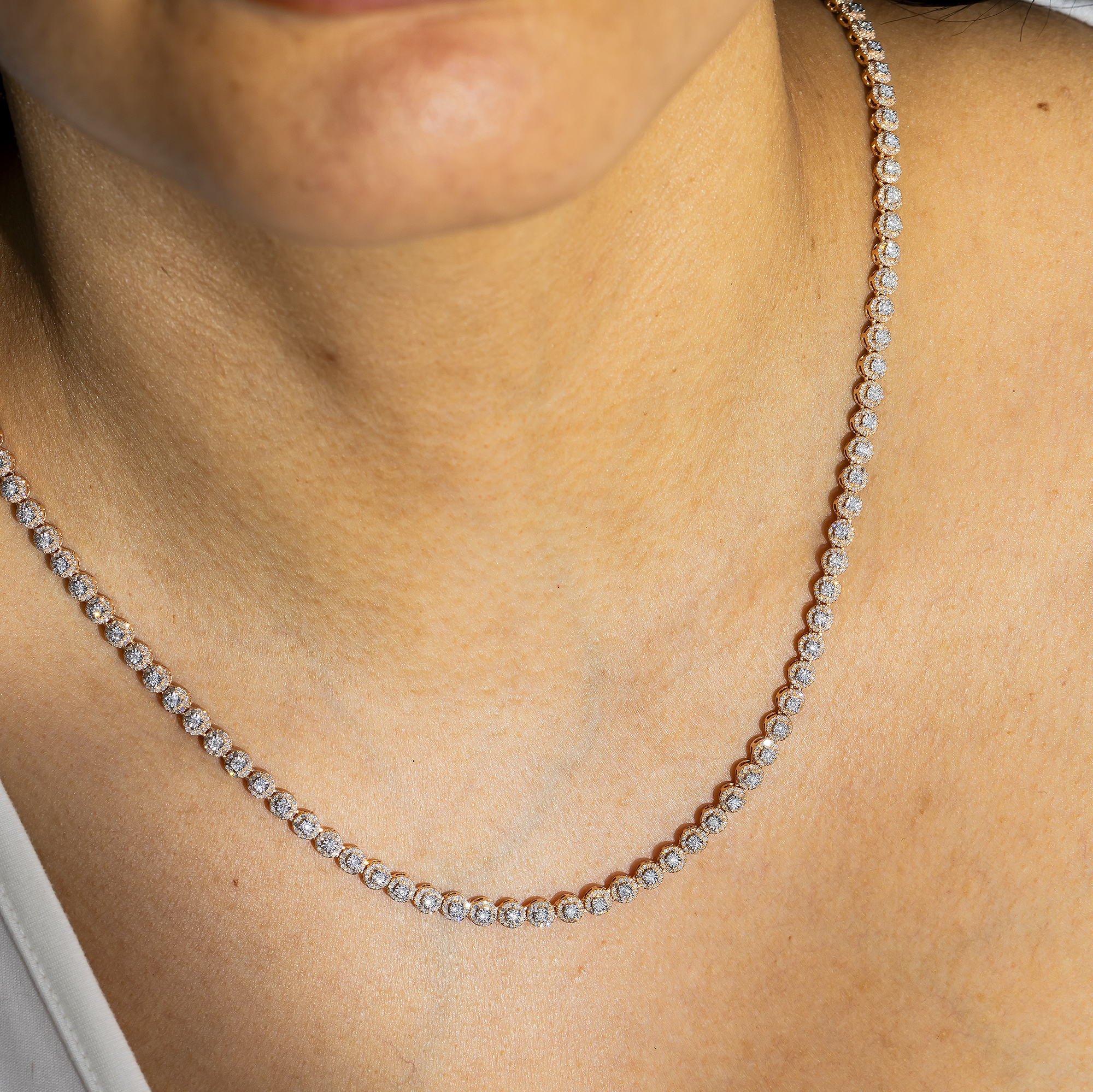 10K GOLD ROUND DIAMOND TENNIS CHAIN 3.50 CT