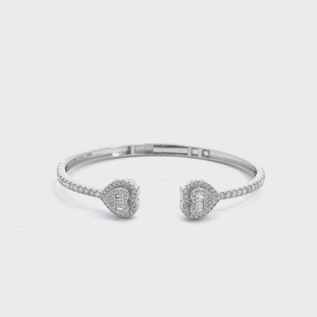 10K GOLD ROUND AND BAGUETTE DIAMOND HEART BANGLE 1.84CT