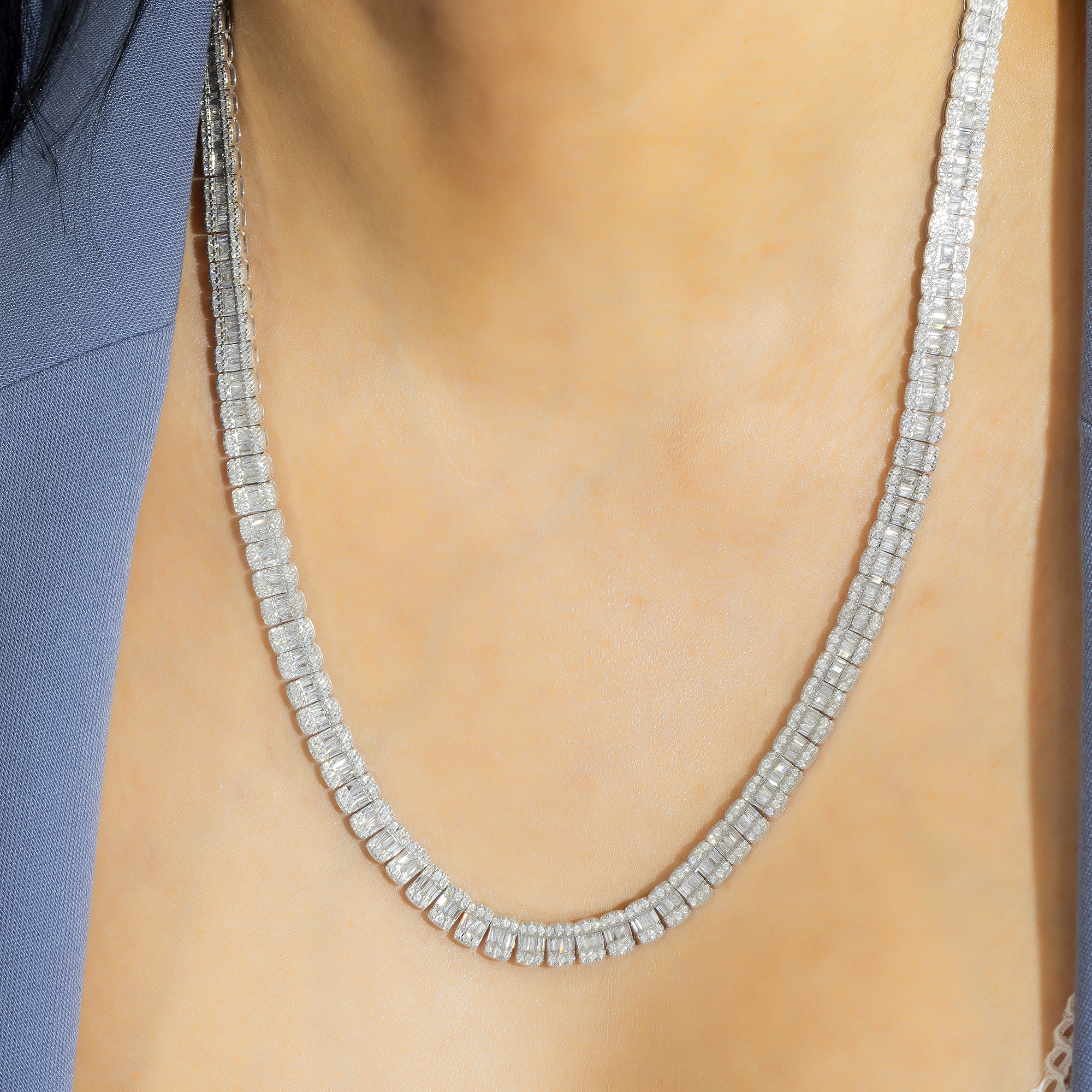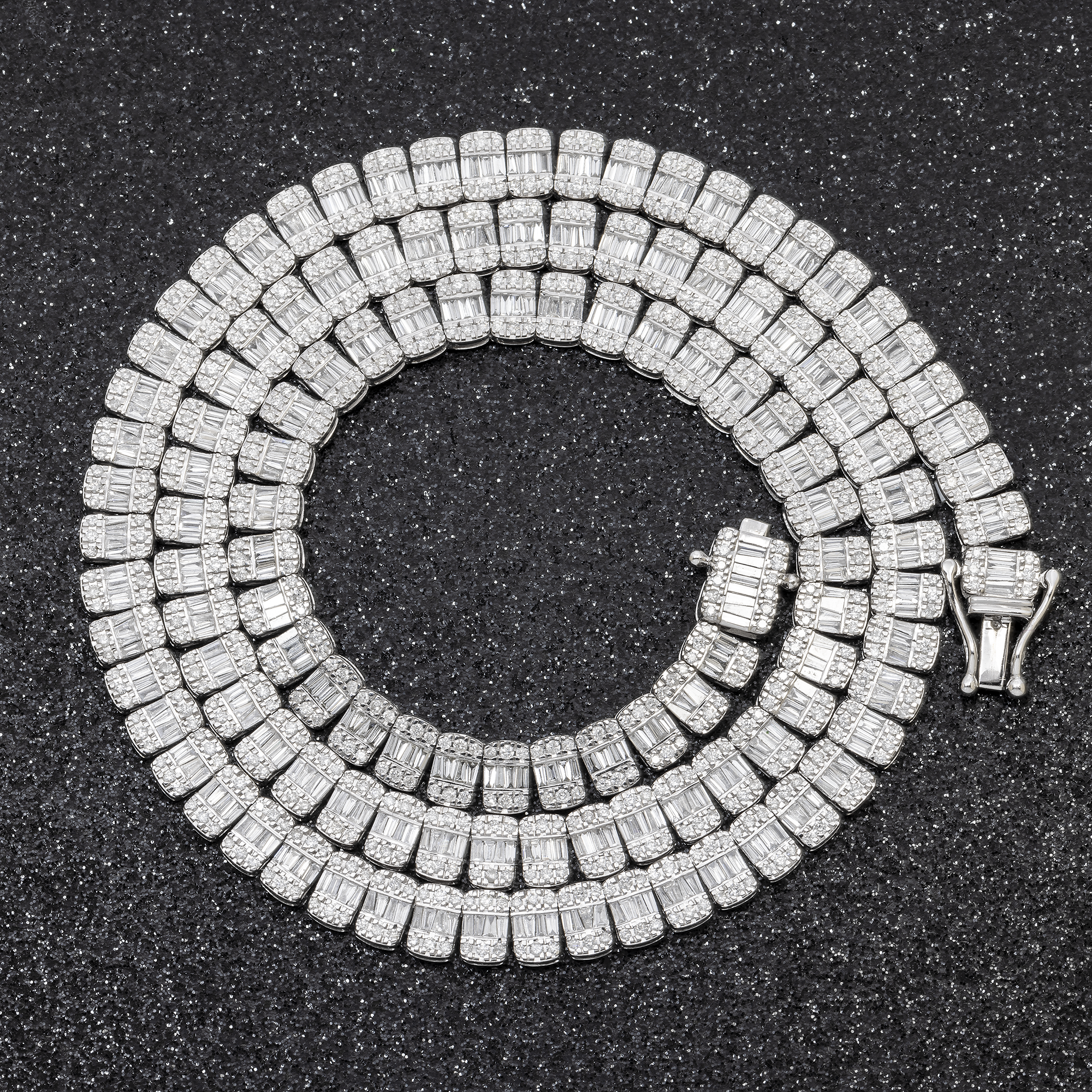 10K GOLD 7MM BAGUETTE AND ROUND DIAMOND CHAIN 13.69 CT