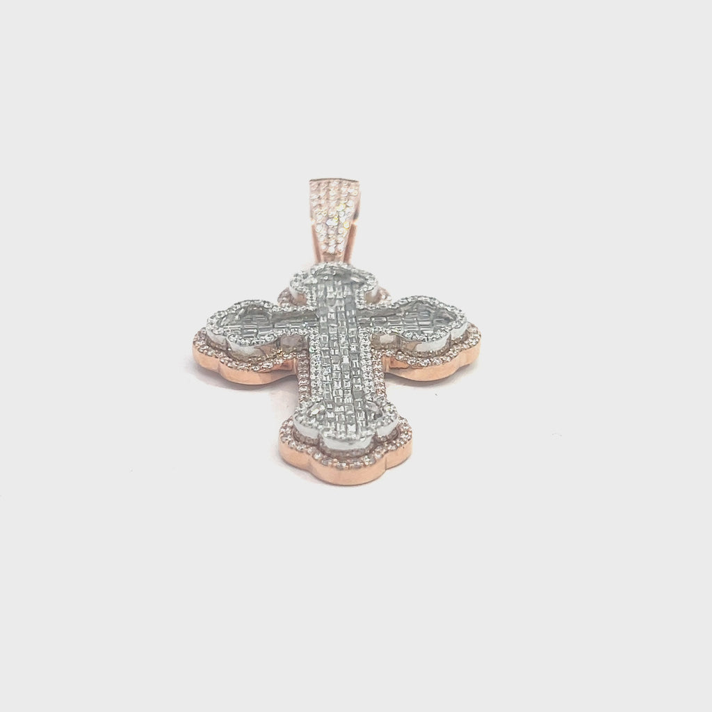 14K TWO-TONE GOLD DIAMOND 3-D CROSS PENDANT 3.76 CT