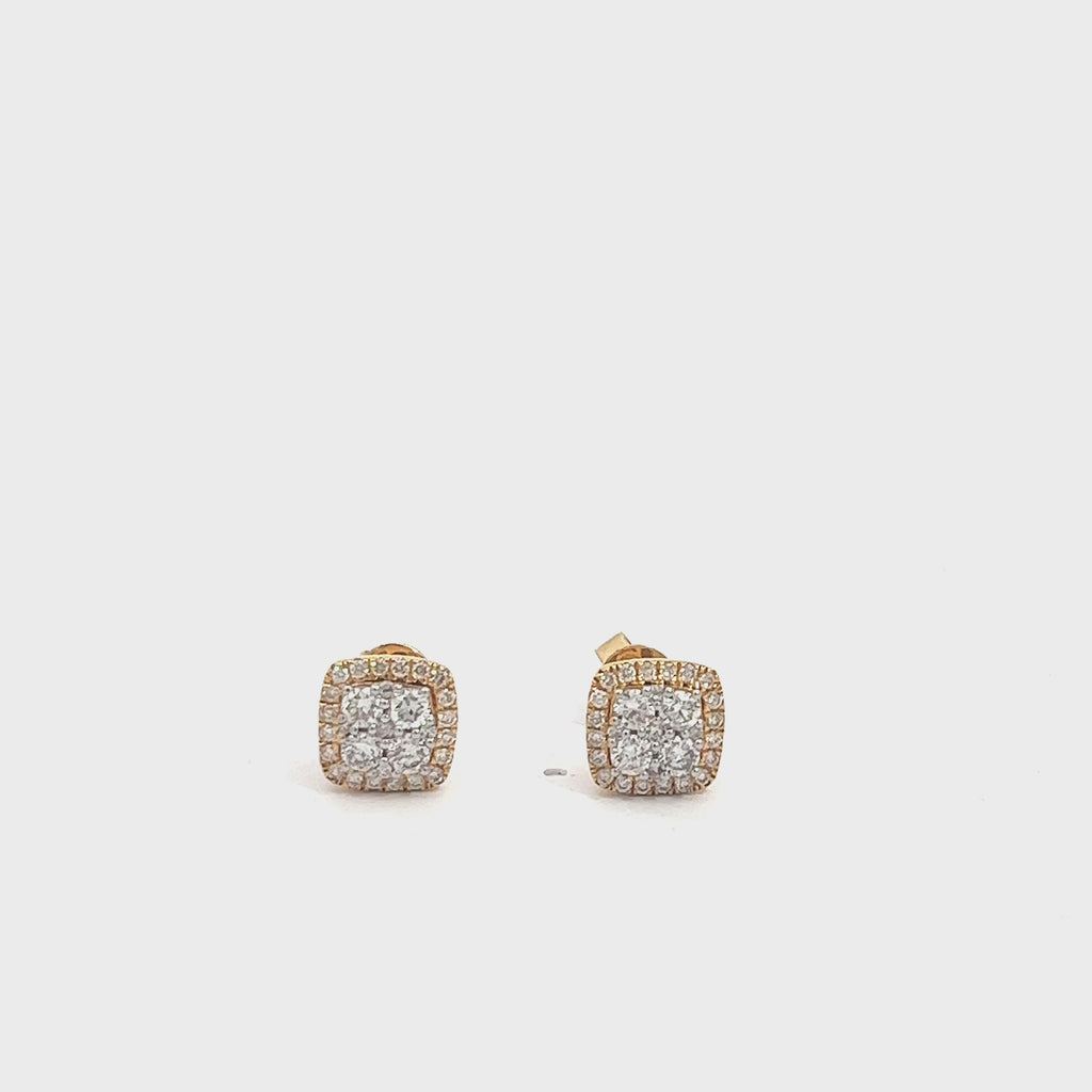 14K GOLD DIAMOND SQUARE SHAPED CLUSTER EARRING STUDS 1.00 CT