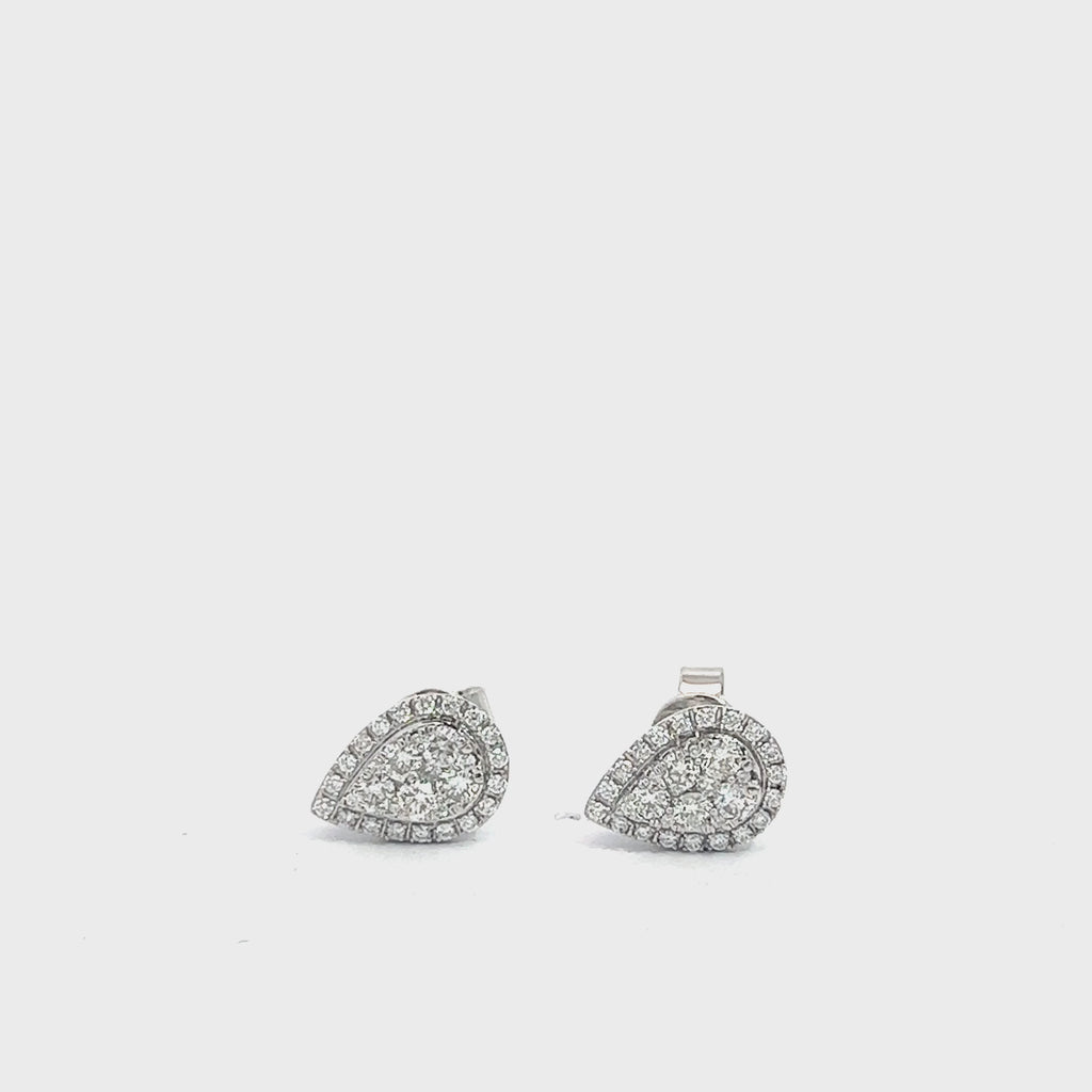 14K GOLD DIAMOND PEAR SHAPE CLUSTER EARRINGS 0.75 CT
