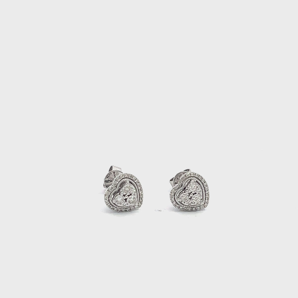 14K GOLD DIAMOND HEART CLUSTER EARRINGS ILLUSION SET 0.30 CT