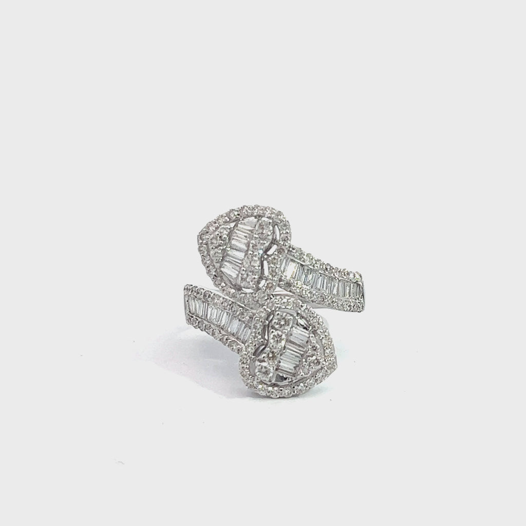 14K GOLD ROUND AND BAGUETTE DIAMOND HEART BYPASS RING 1.60 CT