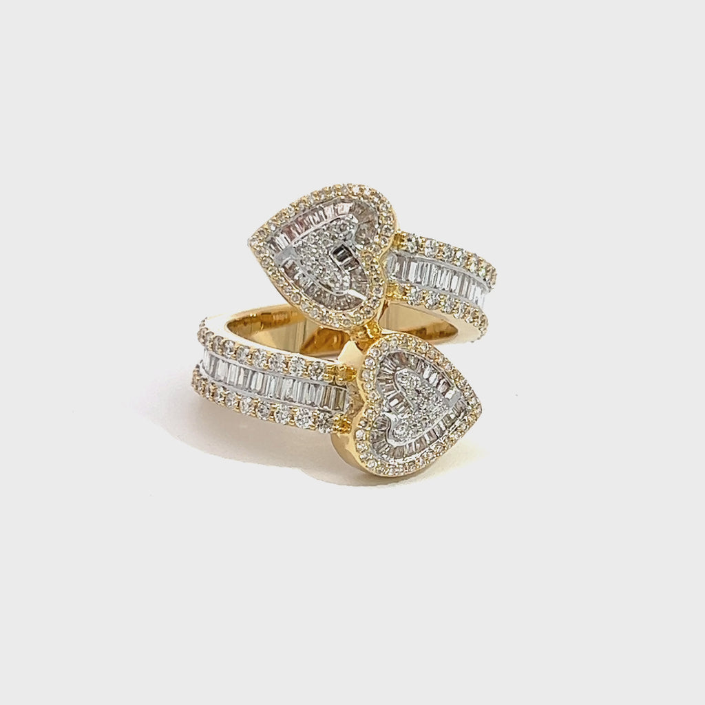 10K GOLD ROUND AND BAGUETTE DIAMOND HEART BYPASS RING 1.35 CT