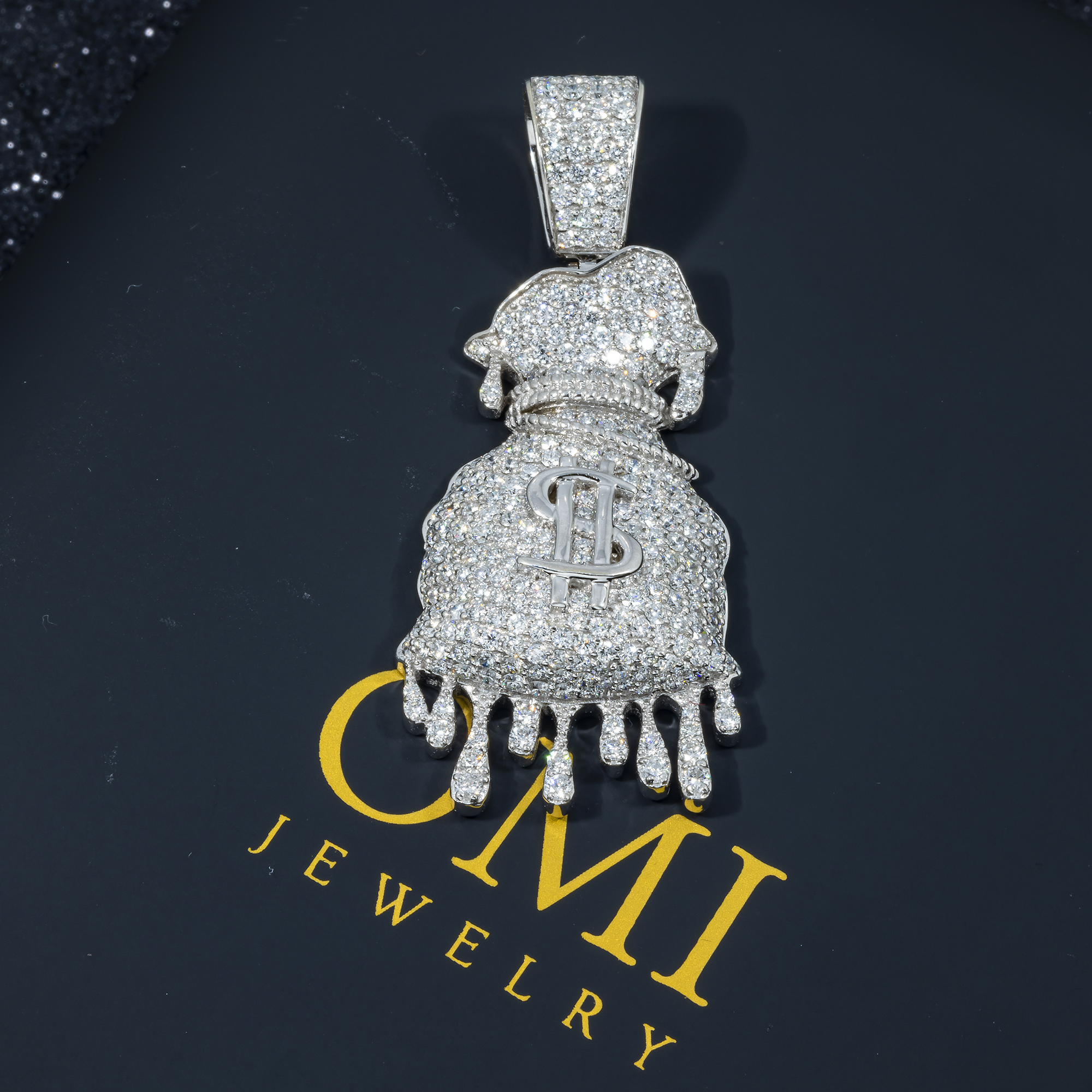 14K GOLD DIAMOND DRIPPING MONEY BAG PENDANT 3.75 CT