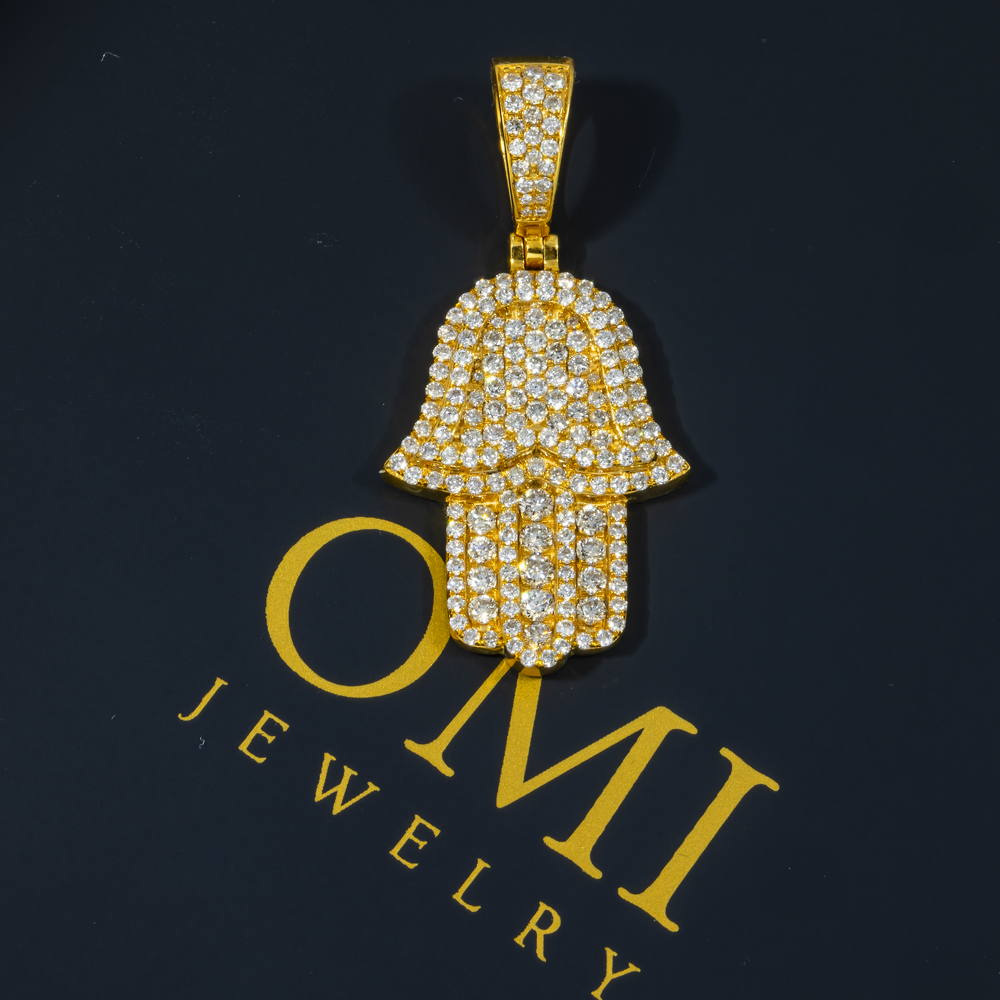 14K GOLD DIAMOND 3D HAMSA PENDANT 1.45 CT