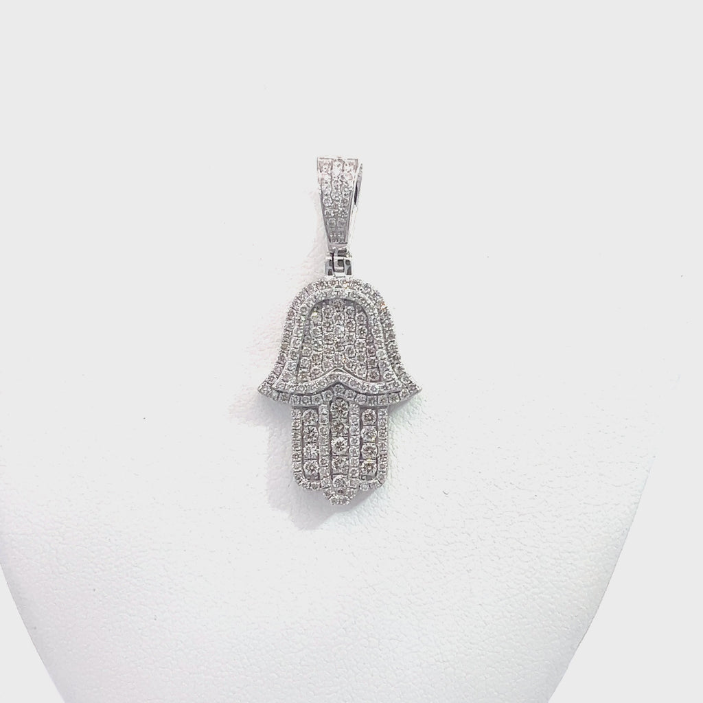 14K GOLD DIAMOND 3D HAMSA PENDANT 1.45 CT