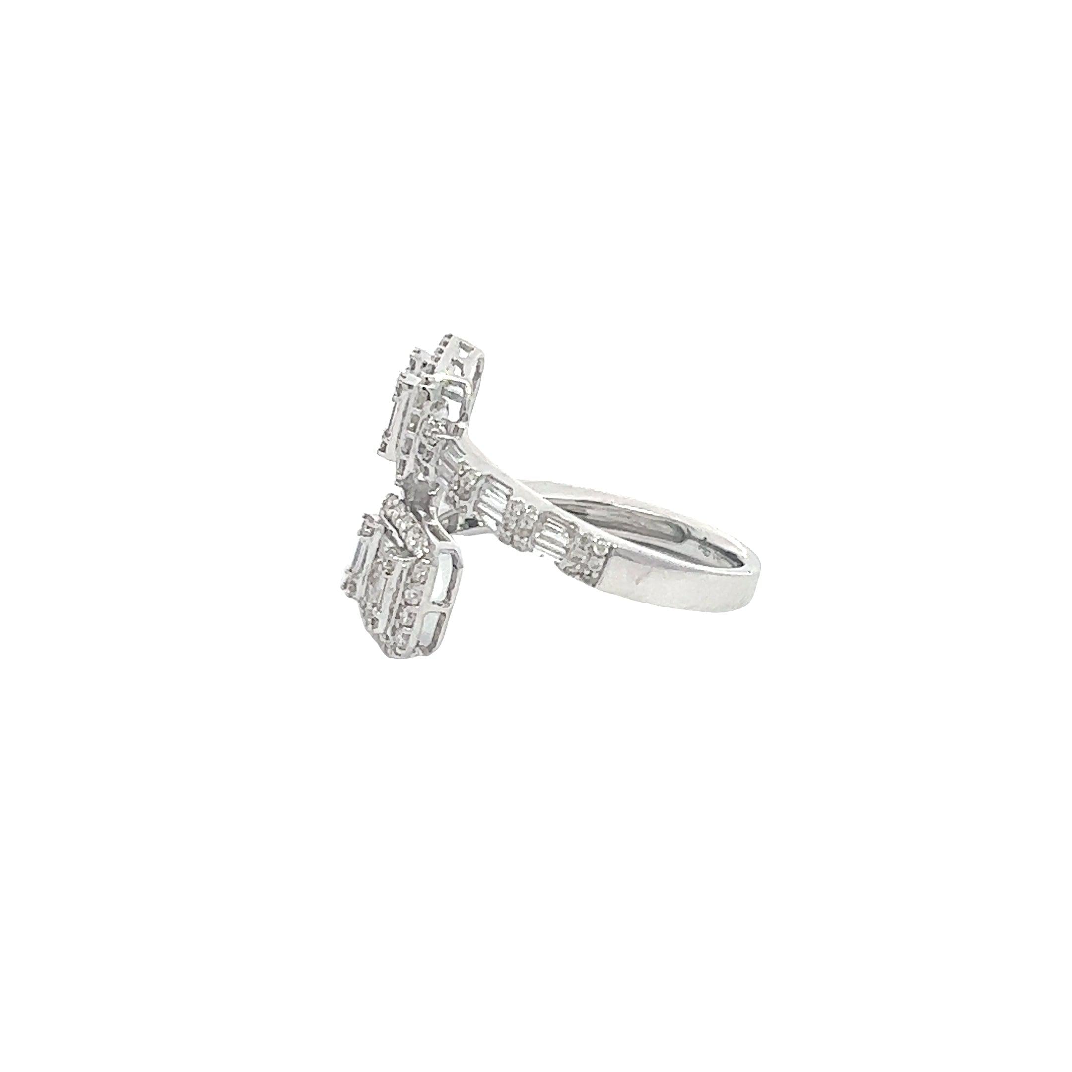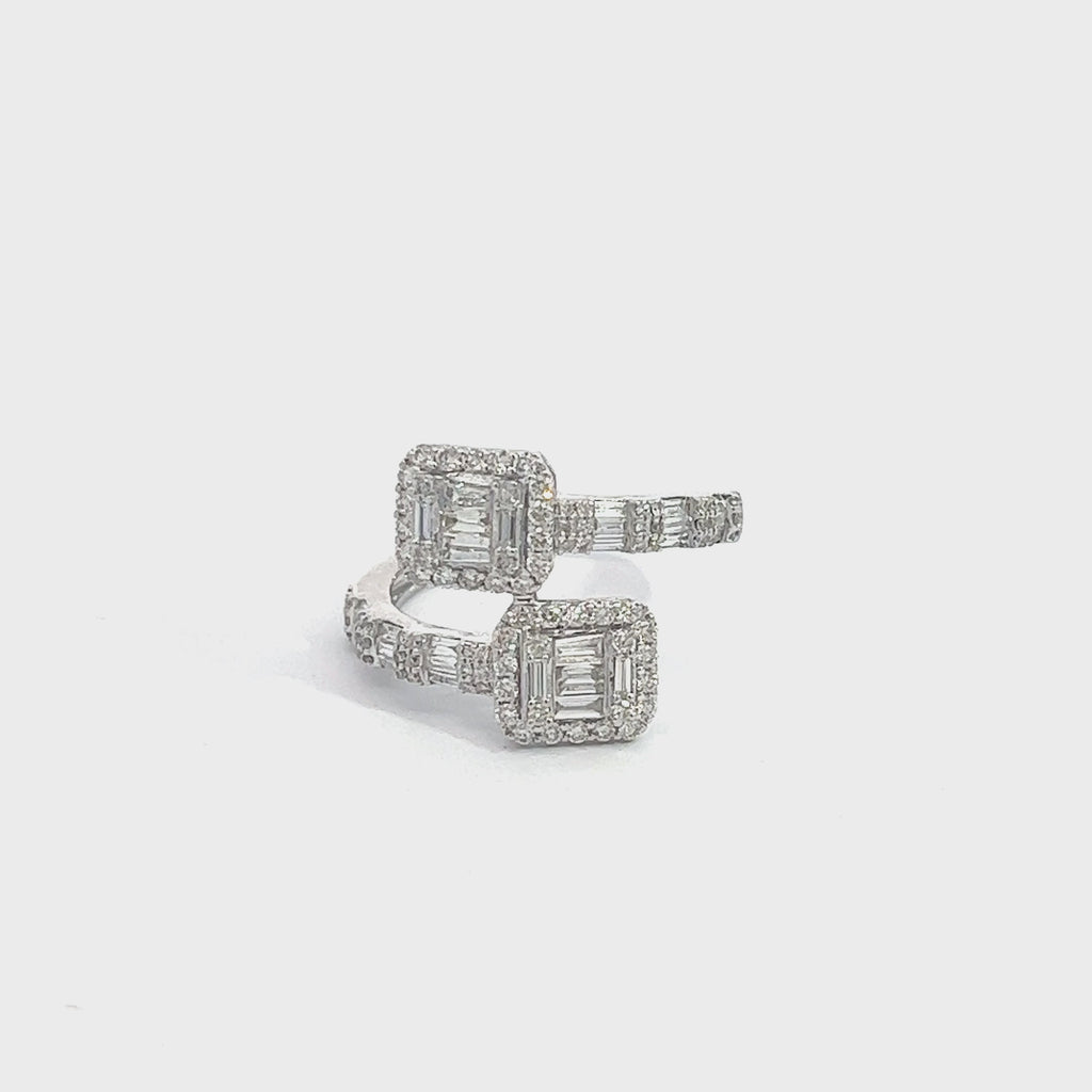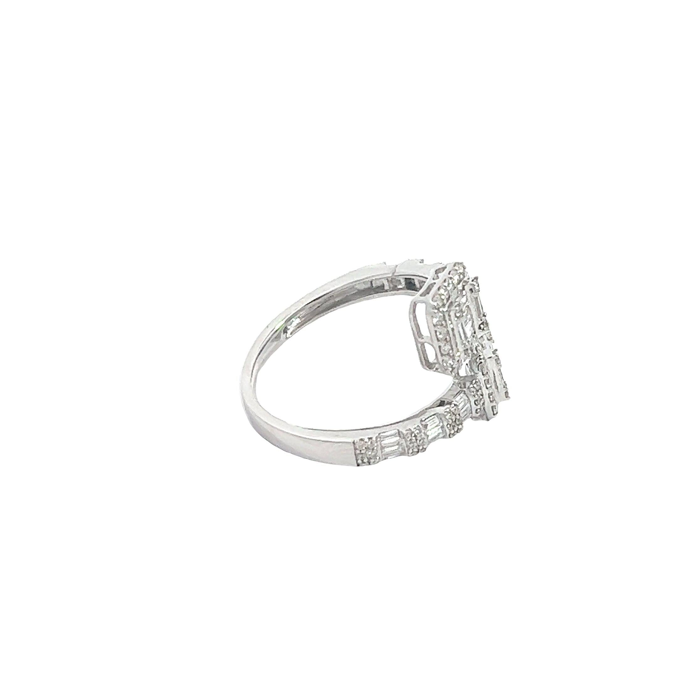 14K GOLD ROUND AND BAGUETTE DIAMOND SQUARE BYPASS BAND 1.15 CT