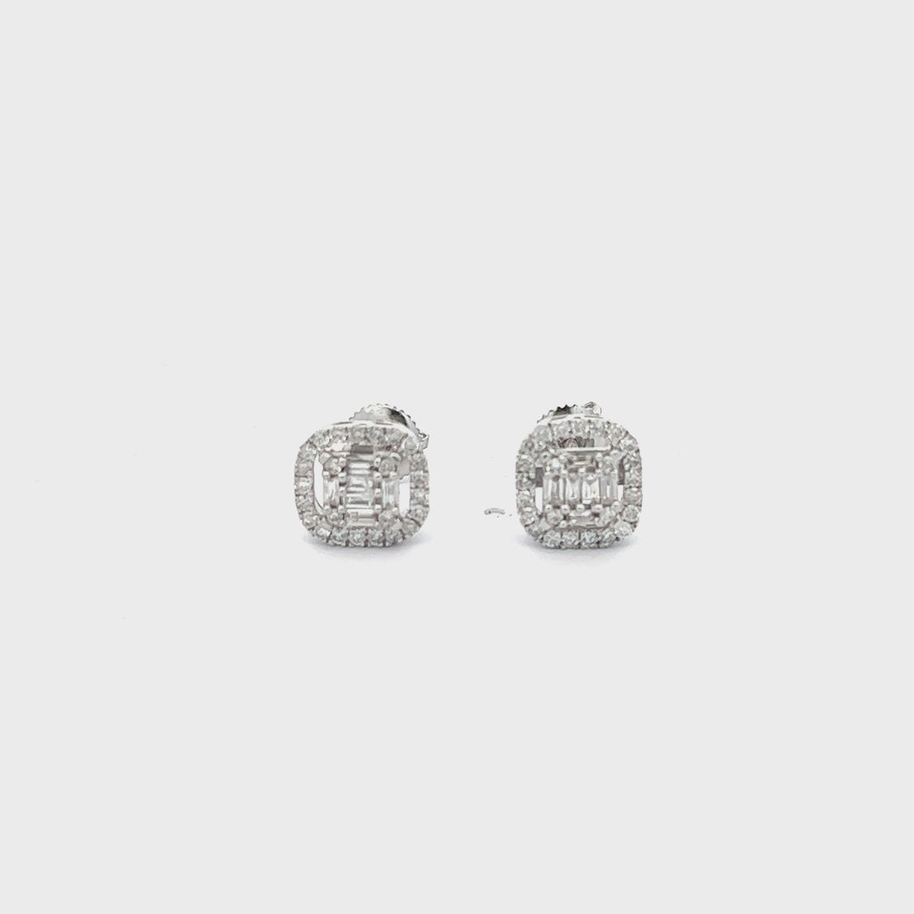 14K GOLD ROUND AND BAGUETTE DIAMOND STUD EARRINGS 0.85 CT