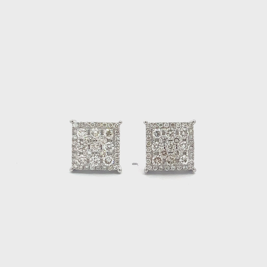 14K GOLD DIAMOND SQUARE CLUSTER EARRINGS 2.05 CT