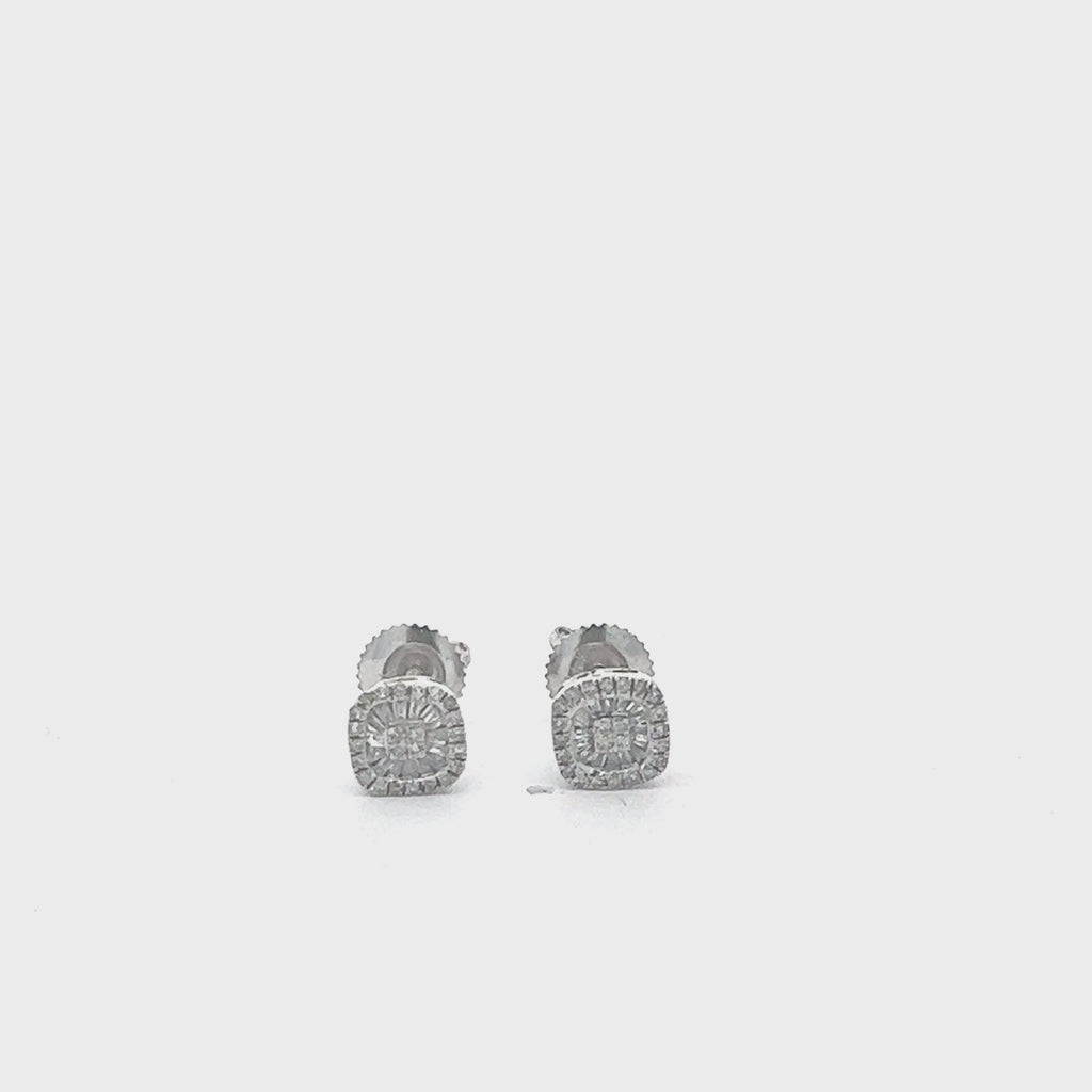14K ROUND AND BAGUETTE GOLD DIAMOND SQUARE CLUSTER EARRINGS 0.40 CT