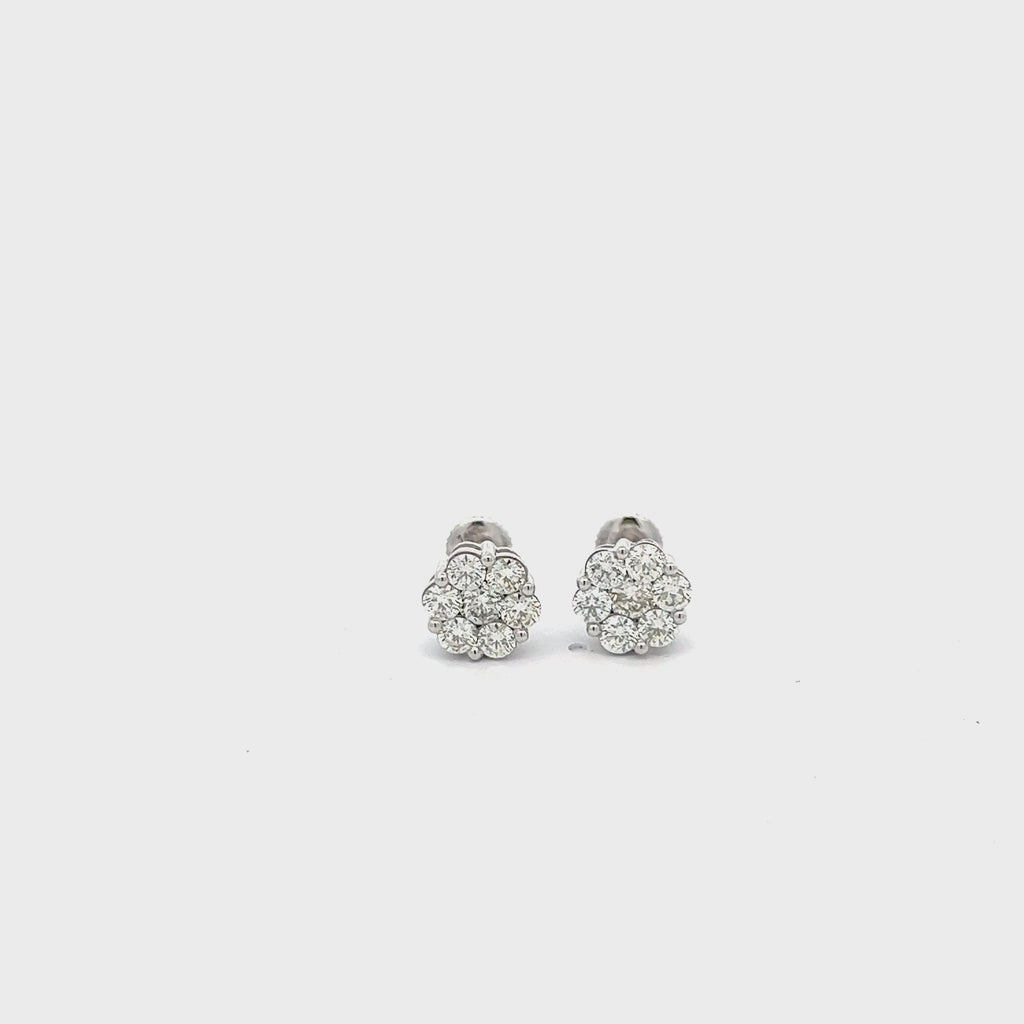 14K GOLD DIAMOND 7-STONE FLOWER EARRINGS 2.00CT