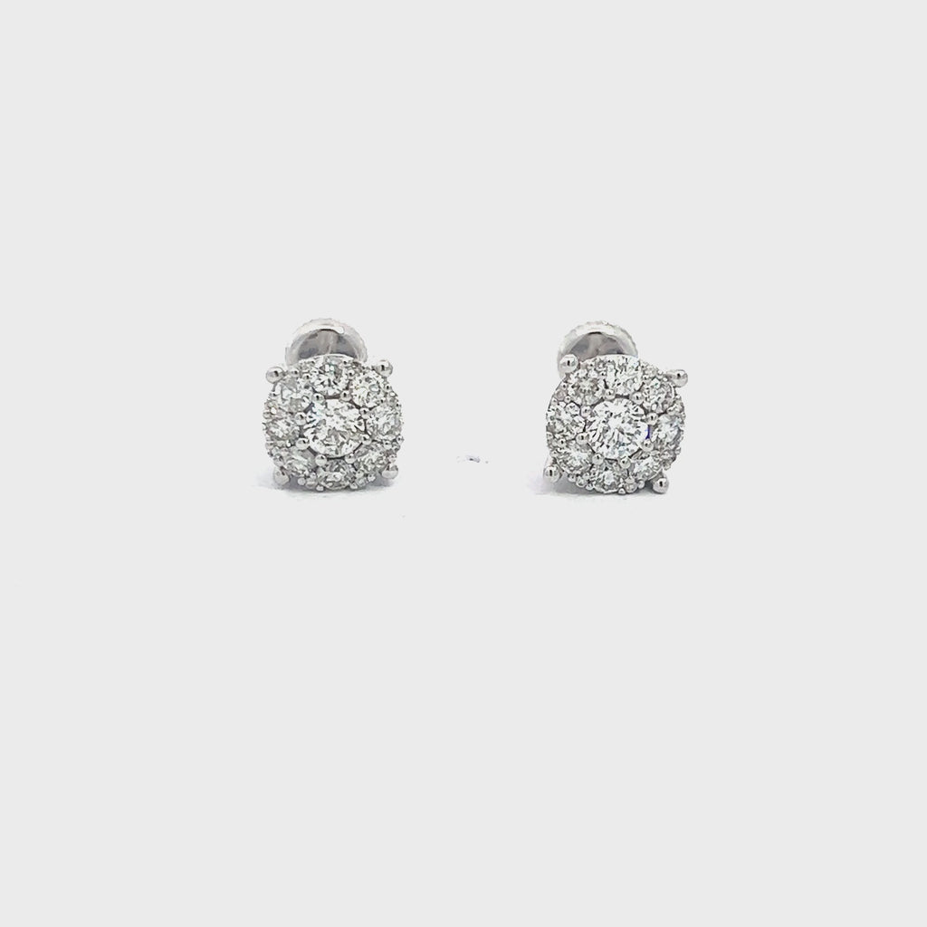14K GOLD DIAMOND ROUND FLEUR EARRINGS 1.15 CT