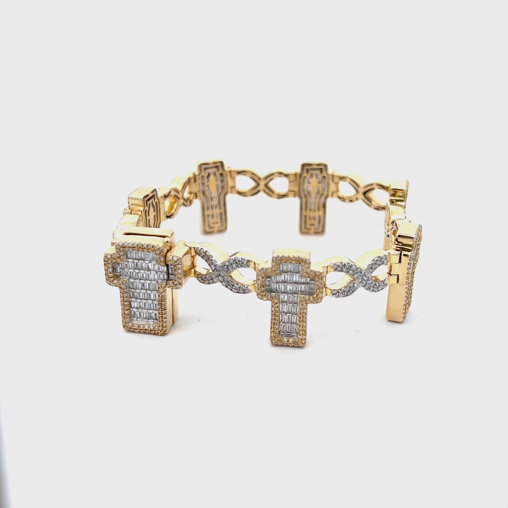 14K GOLD ROUND AND BAGUETTE DIAMOND INFINTY LINK CROSS BRACELET 6.55 CT