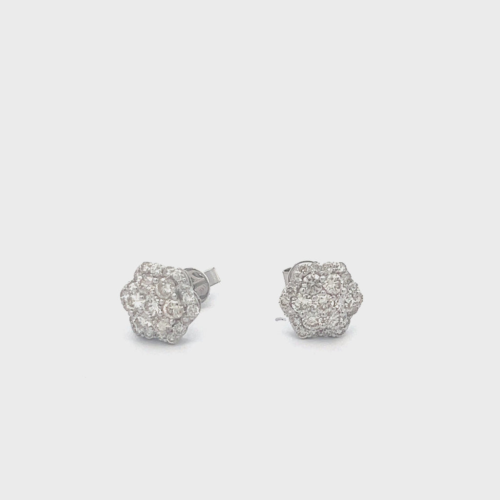 14K GOLD DIAMOND FLOWER EARRINGS 2.00 CT