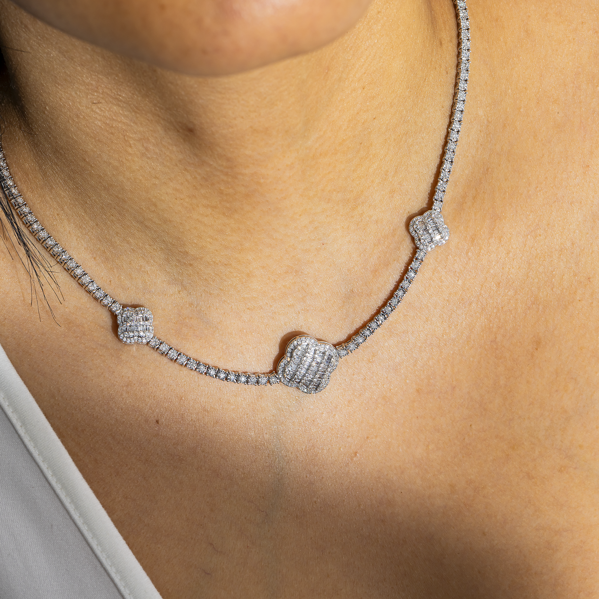 10K GOLD BAGUETTE AND ROUND DIAMOND CLOVER TENNIS CHAIN 2.75 CT
