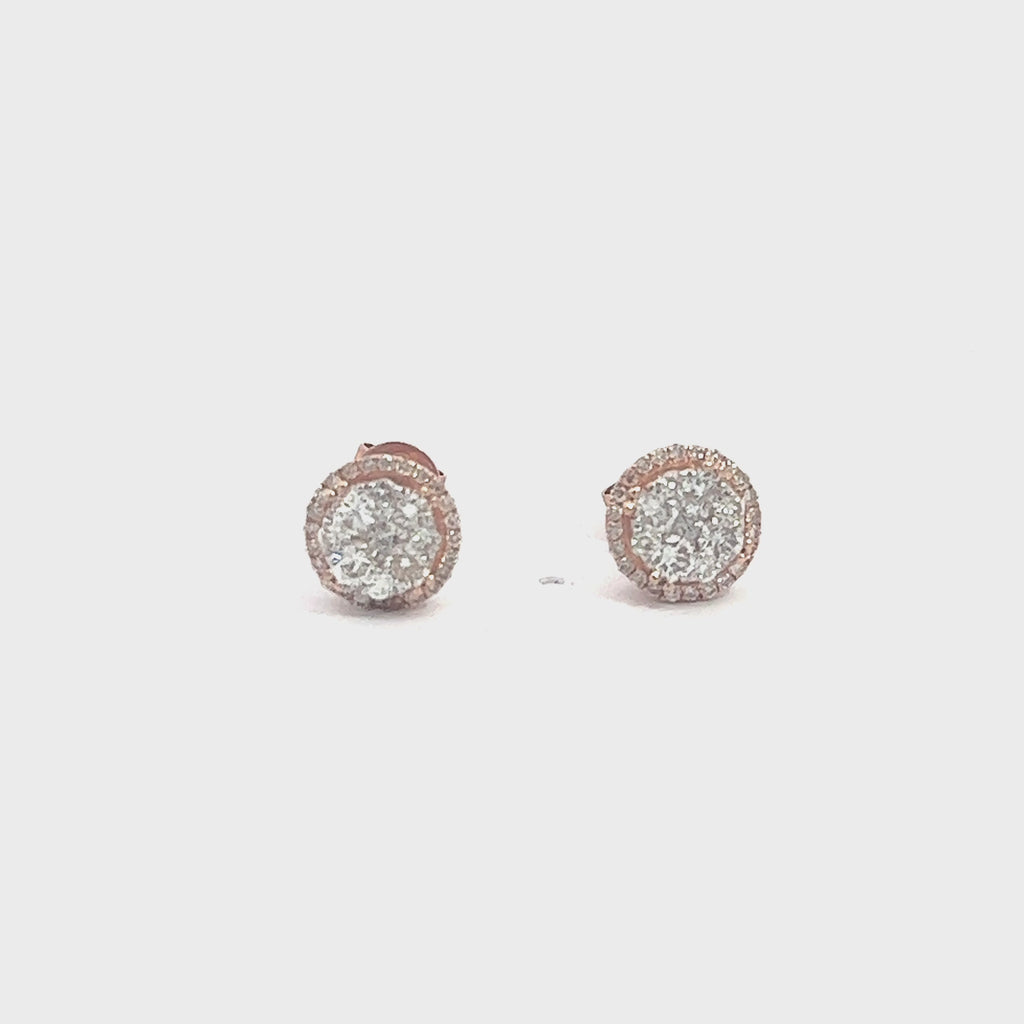 14K GOLD DIAMOND ROUND CLUSTER EARRINGS 1.00 CT