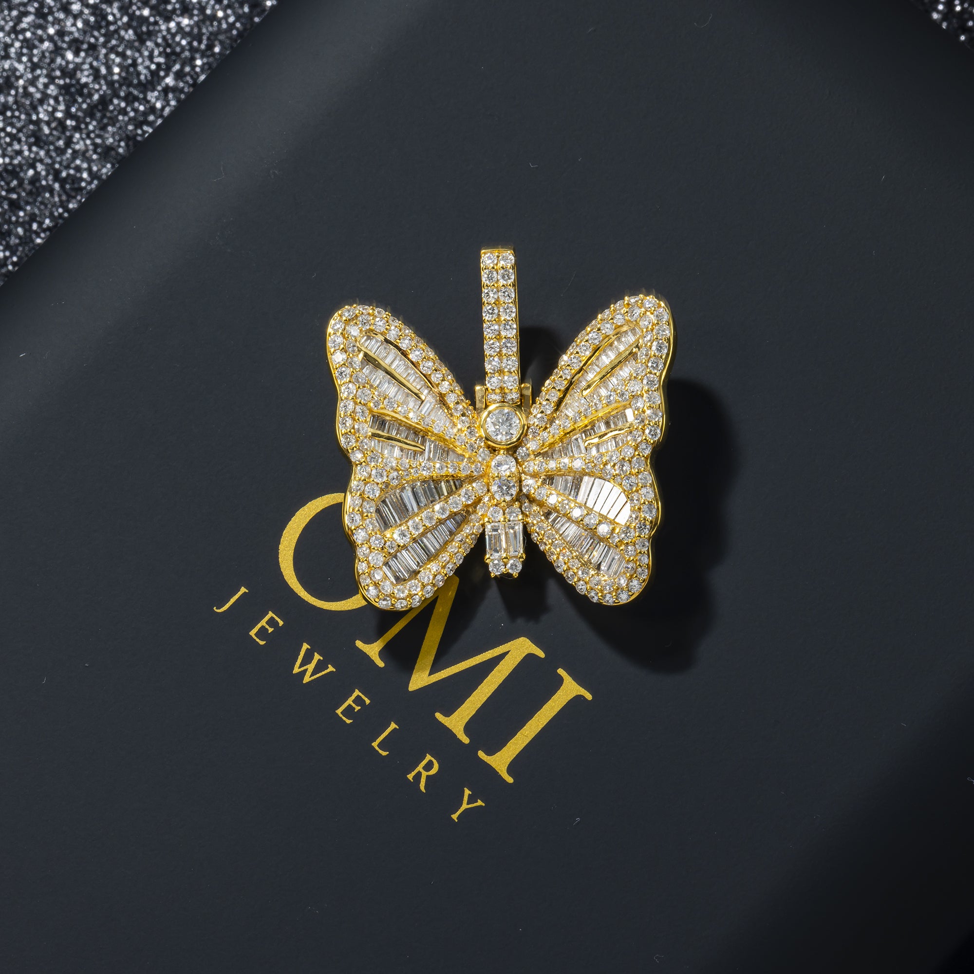 14K GOLD BAGUETTE AND ROUND DIAMOND BUTTERFLY PENDANT 4.00 CTW