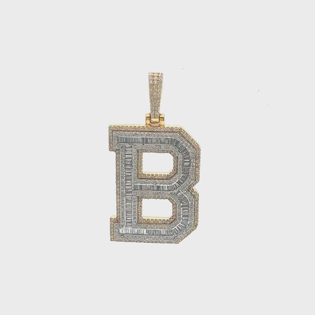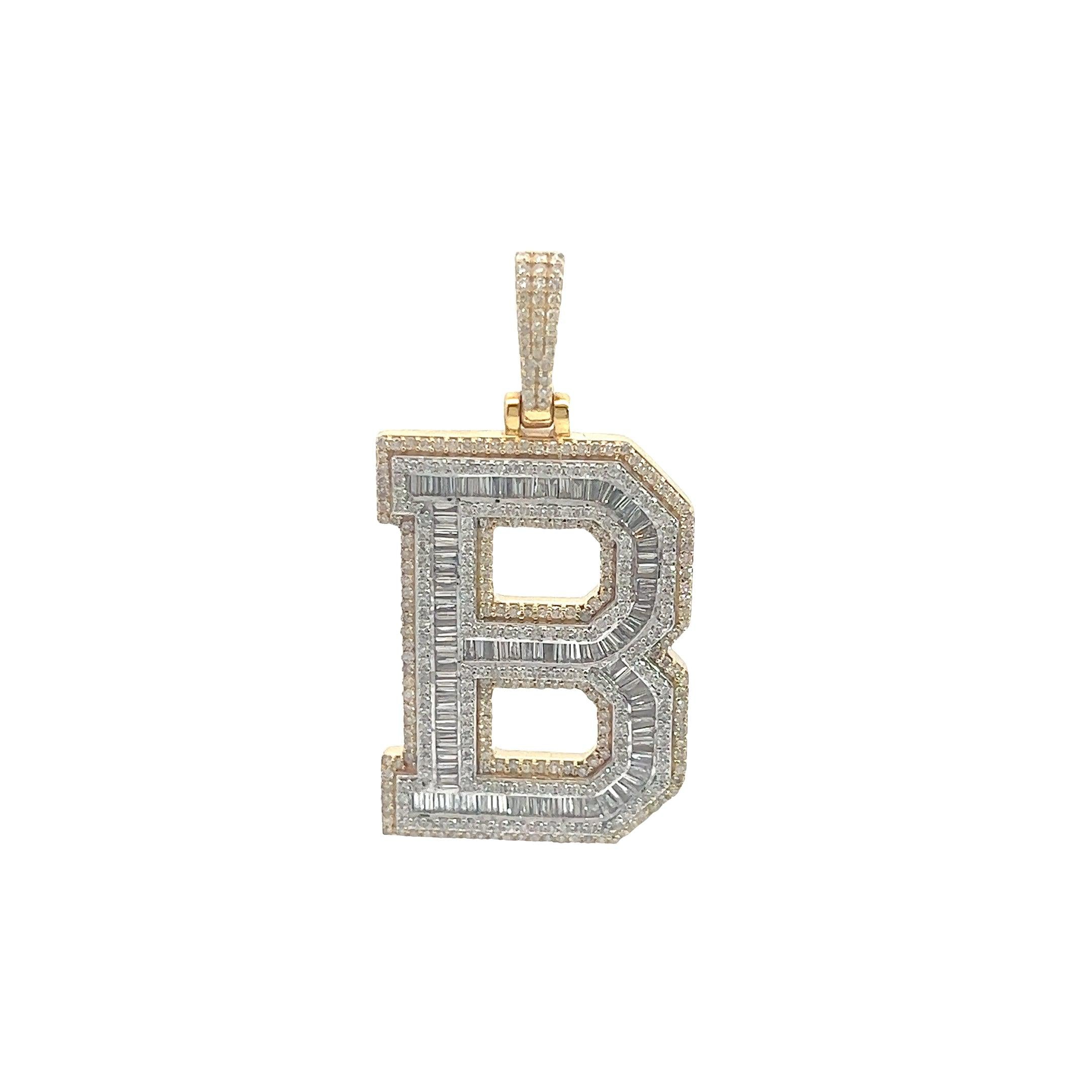 10K TWO TONE GOLD ROUND AND BAGUETTE DIAMOND LETTER "B" PENDANT 2.09 CT