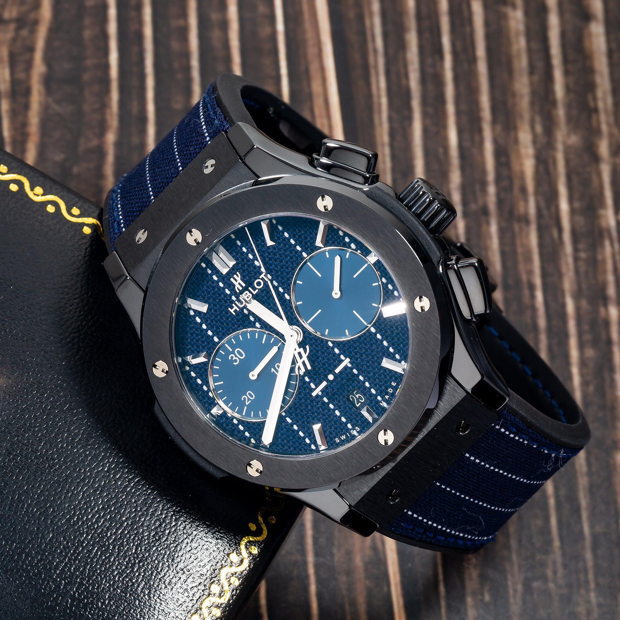 Hublot Classic Fusion Chronograph 521.CM.2707.NR.ITI18 45MM Blue Dial With Leather Bracelet