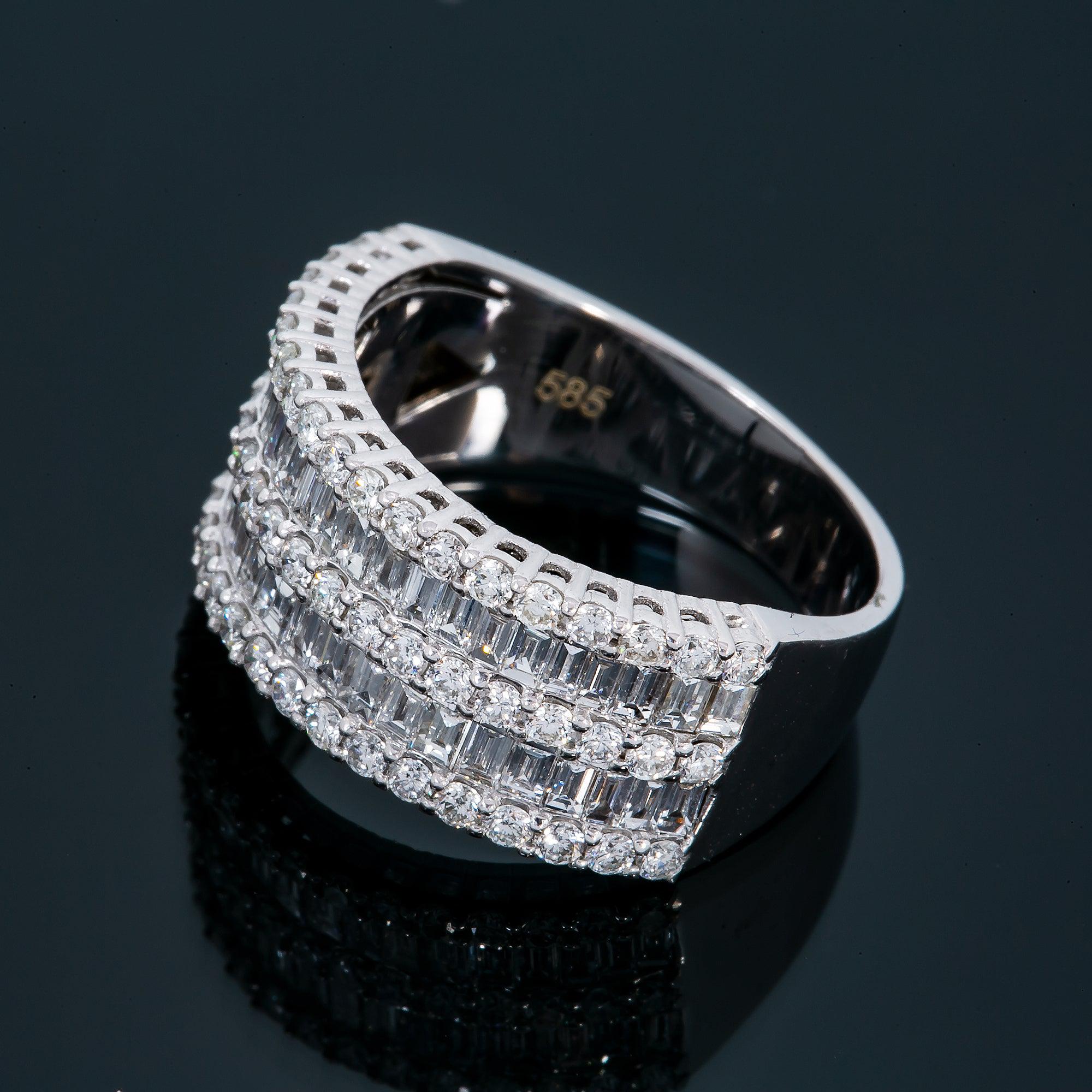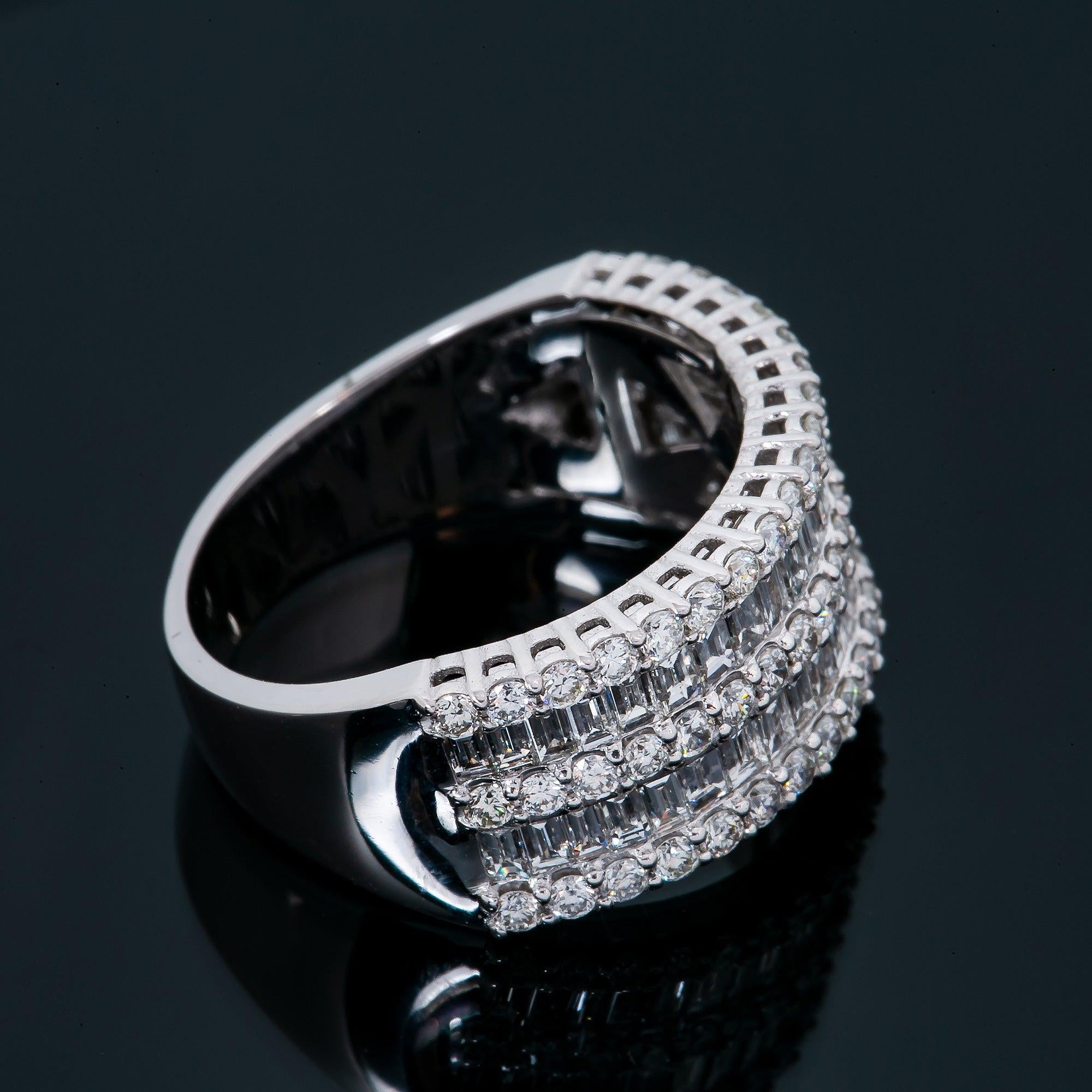 Ladies 14K White Gold Fancy Baguette Diamond Ring With 1.6Ct Diamonds