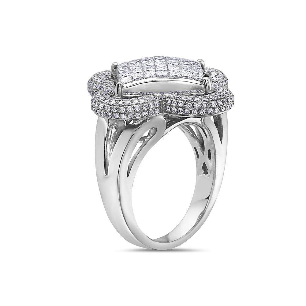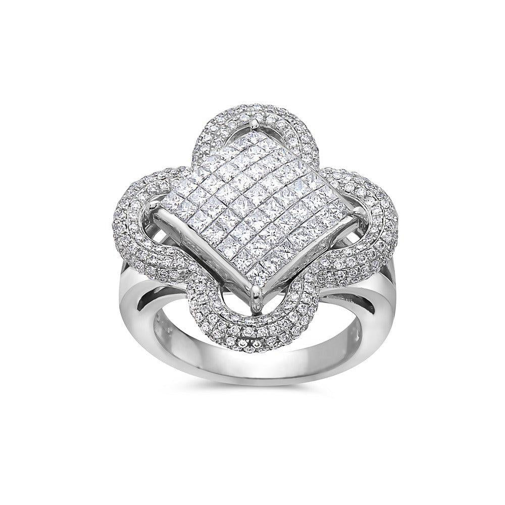 14K WHITE GOLD ROUND AND PRINCESS CUT DIAMOND RIGHT HAND CLOVER RING 2.40 CT