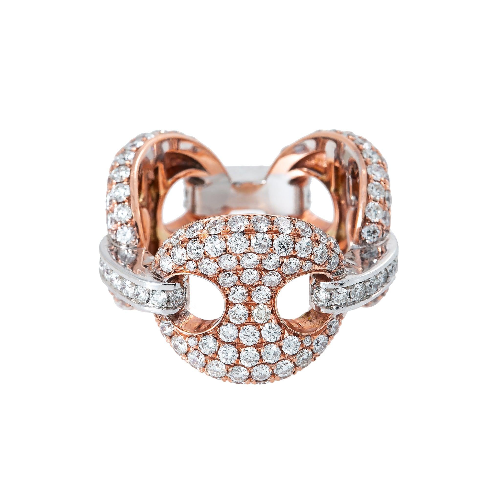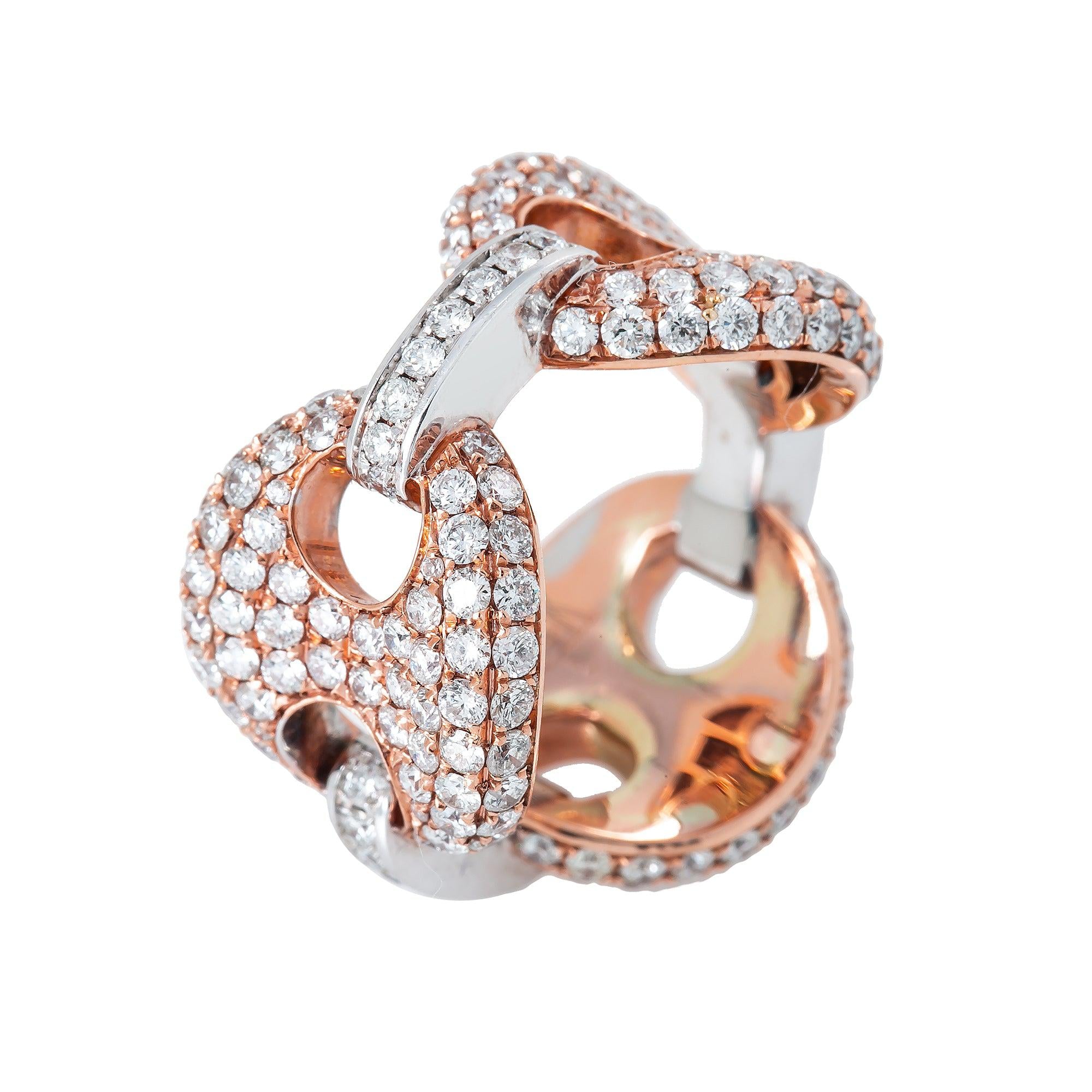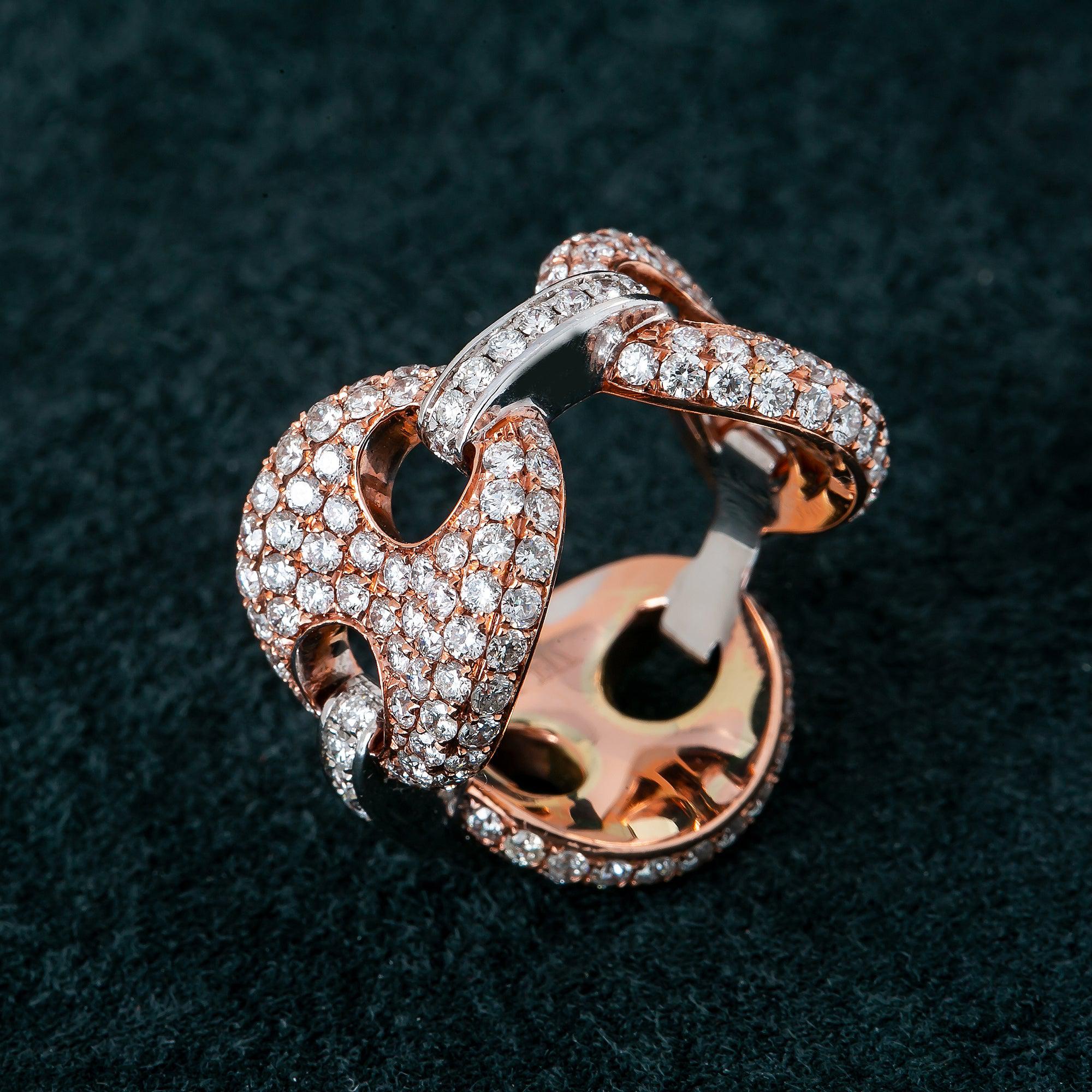 Men's 14K Rose Gold Chain Ring with 3.45 CT Diamonds